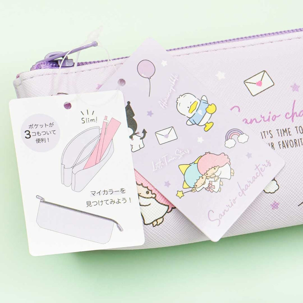 • A pencil case with illustrations of Sanrio characters having a fun time