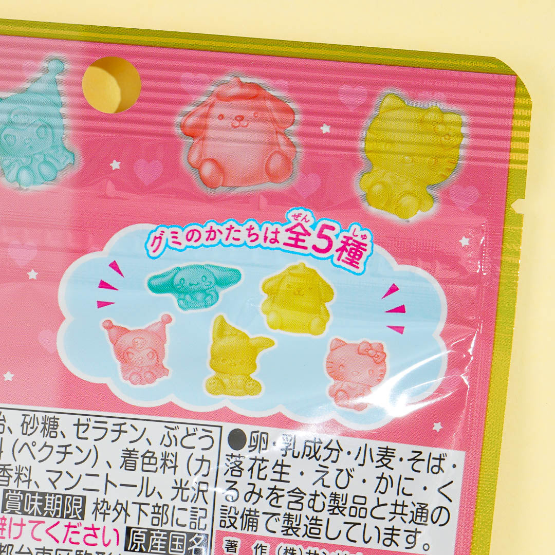 Enjoy munching on these grape-flavored gummies that are shaped like your favorite Sanrio Characters - Cinnamoroll, Pompompurin, Kuromi, Pochacco, and Hello Kitty! These gummy candies come in a resealable pouch so you can save some for later.