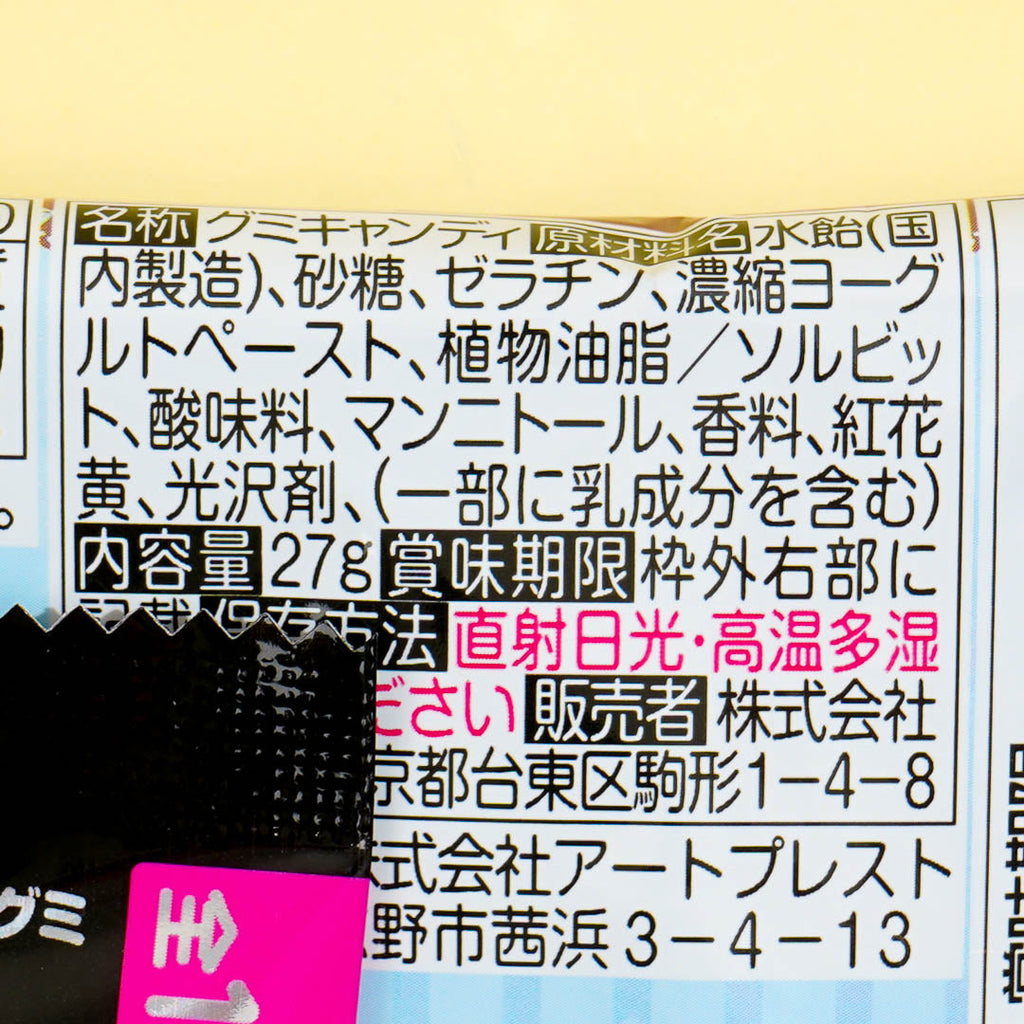 Nibble on this pack of grape yogurt and apple yogurt-flavored gummy candies while watching your favorite show. It features prints of Sanrio cuties all dressed up! This pack of gummies comes with a collectible acrylic stand illustrated with a Sanrio character. Surprise yourself with a random acrylic stand from a set of 15 designs when you order!