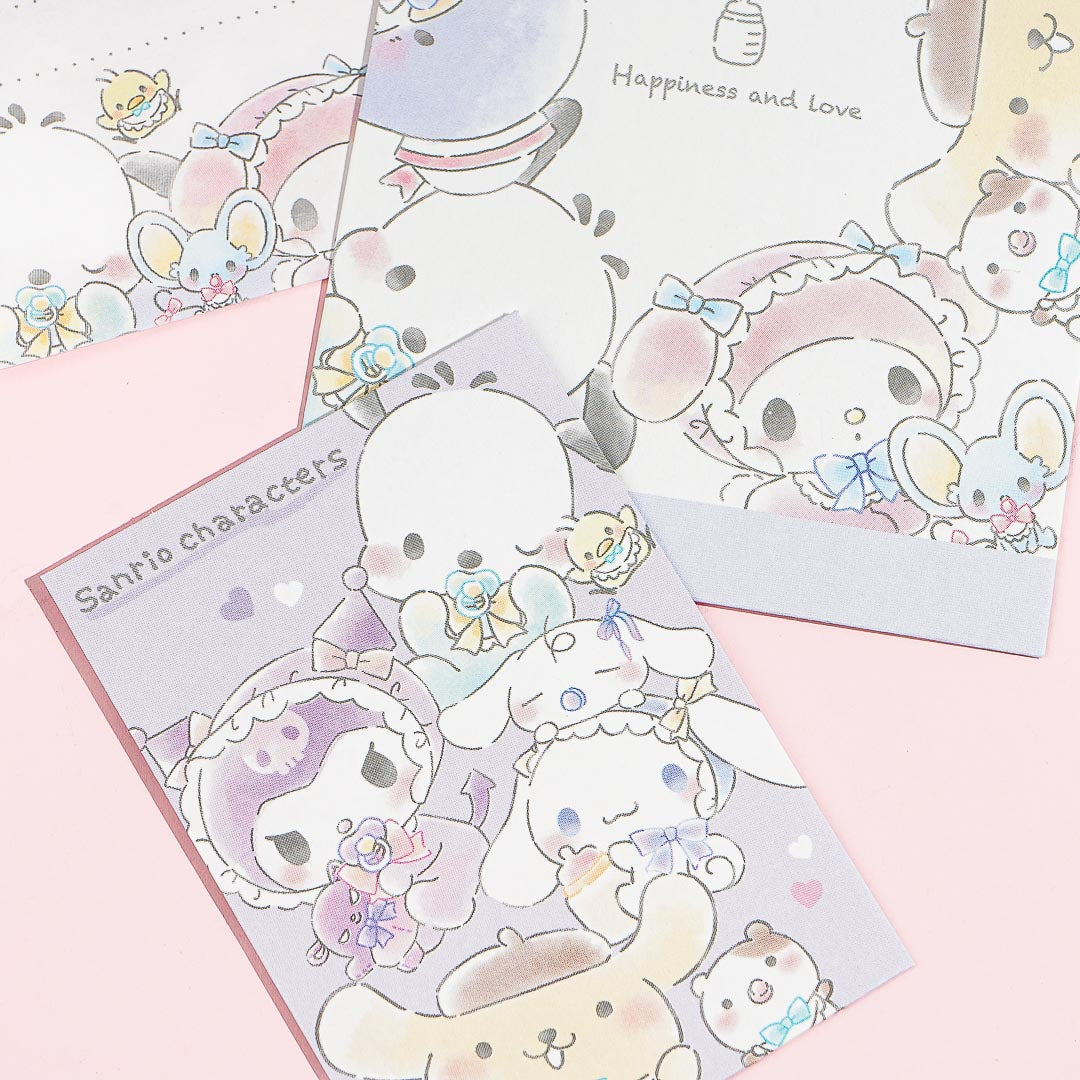 This super kawaii mini letter set is decorated with pastel prints of popular Sanrio Characters like Cinnamoroll, Kuromi, Pochacco, and more as cute babies! Be inspired to write messages to your family using this set.