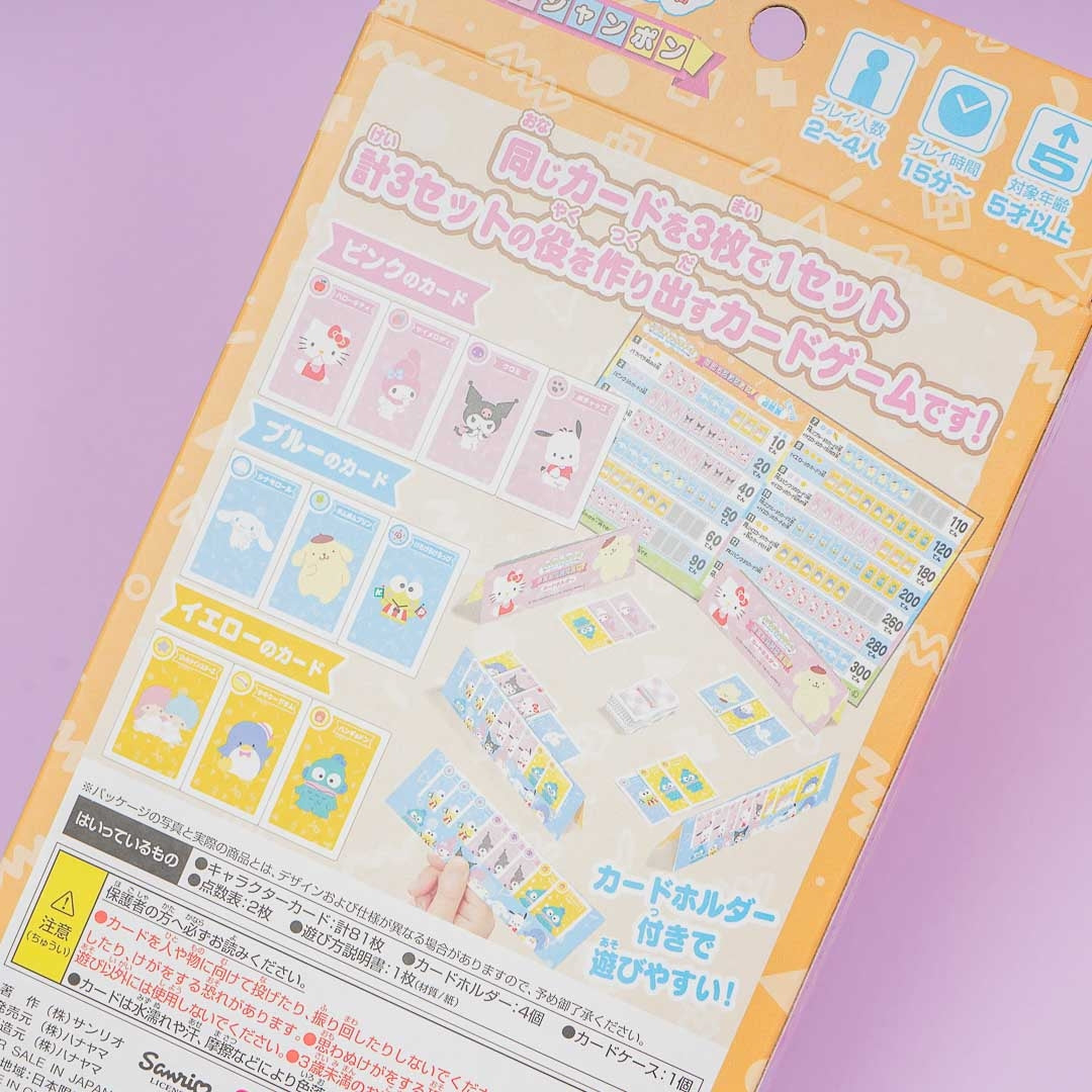 Spend the afternoon playing this card game together with friends! It features prints of cute Sanrio characters. To play the game you exchange character cards you have on hand and gather at least three sets of three cards of the same character. When you complete all three sets, you shout "Jumpon," signaling the end of the game. The winner receives points according to the hands collected. Finish the game and know the final score of points by playing several times.