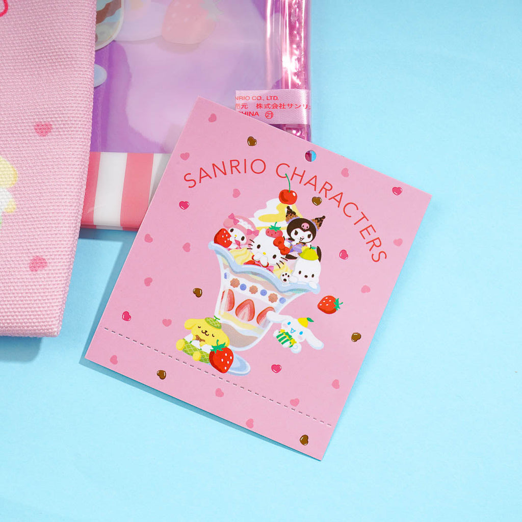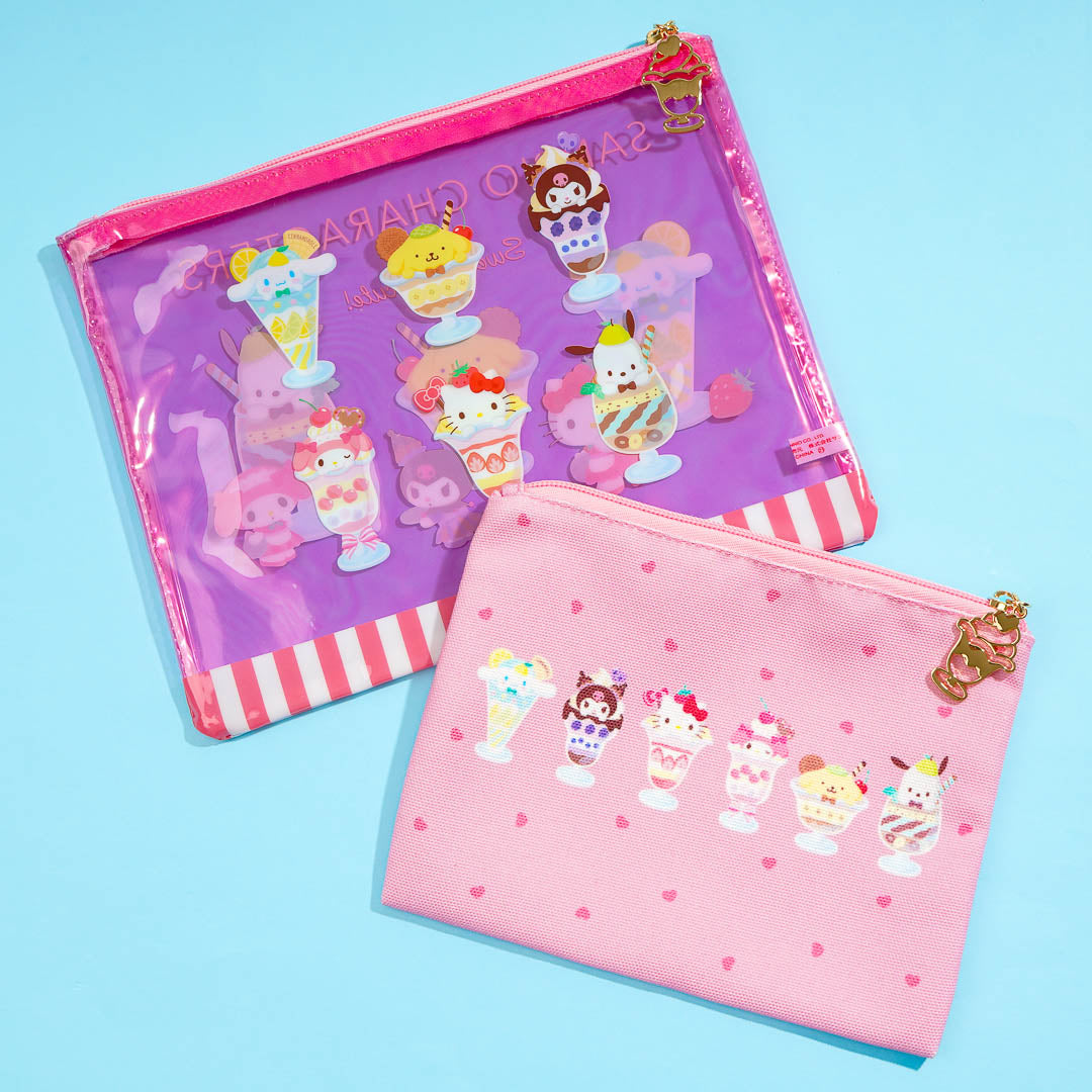 Use this set of kawaii pouches to organize your travel essentials! It showcases cute prints of Sanrio Characters and fruit parfaits. The large pouch is made from waterproof transparent material and the small pouch is made from nylon.