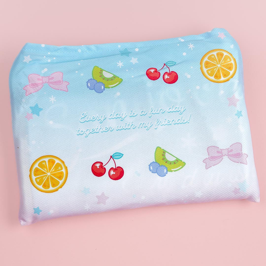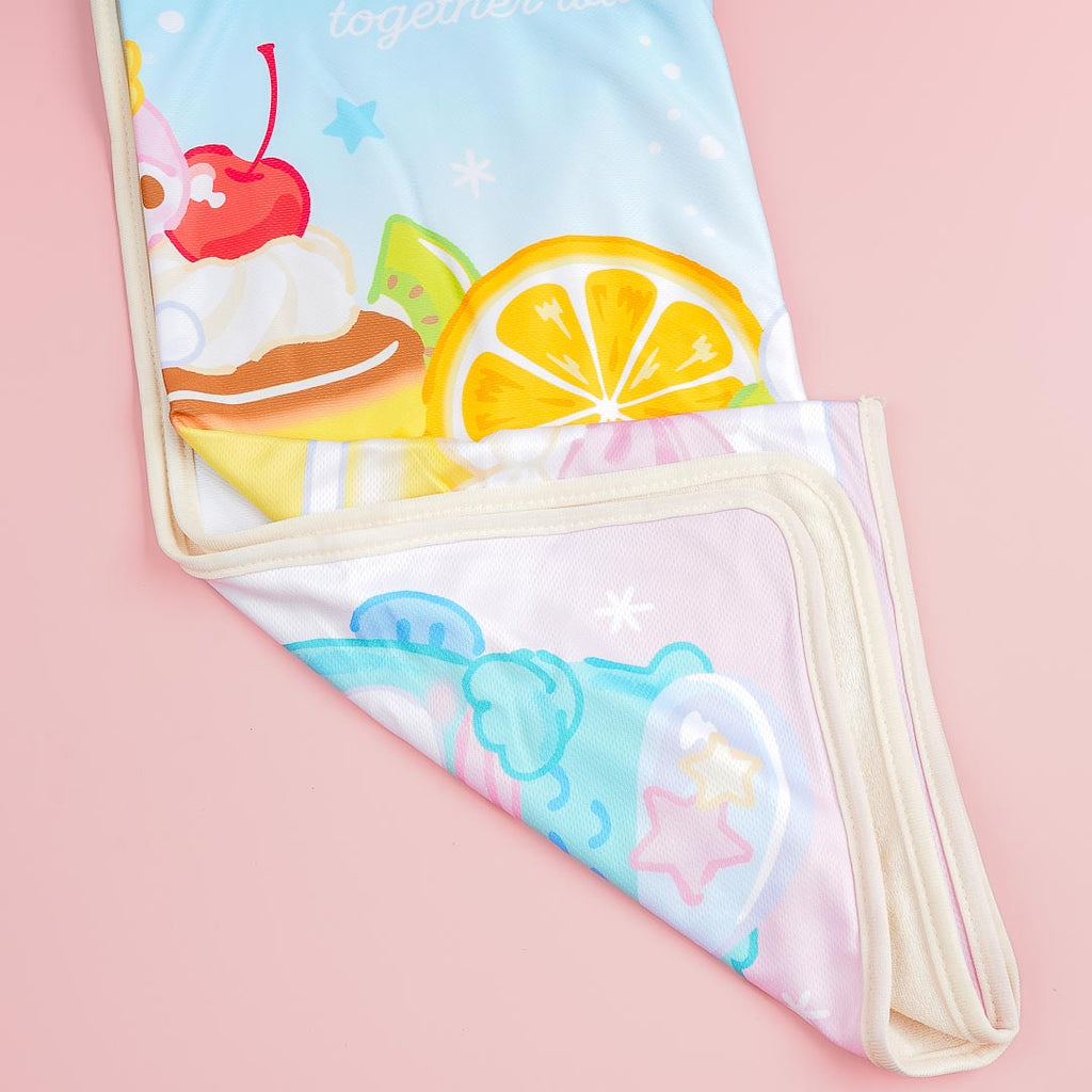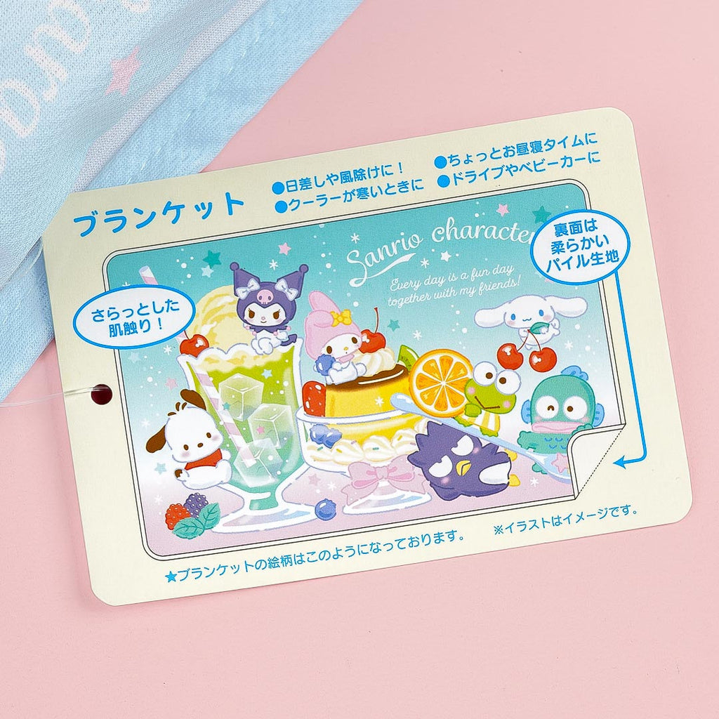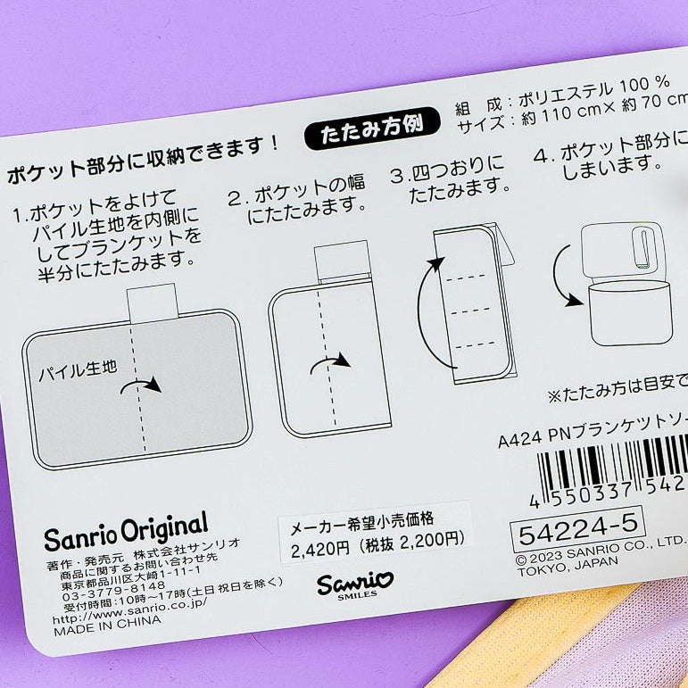 Use this kawaii breathable blanket during your next sleepover! It's illustrated with the Sanrio cuties and a large pudding. You can also fold the blanket into its pocket for storage.