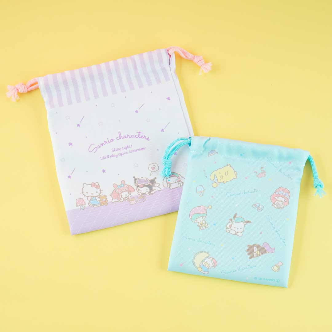 Have fun organizing your charms, hair scrunchies, and other knick-knacks with the help of this cute set of drawstring pouches. They're covered in illustrations of sleepy Sanrio characters!