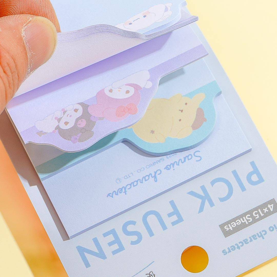 Use this set of kawaii sticky notes in four different sizes for your reminders! It features the cute Sanrio Characters ready to snuggle with their buddies.
