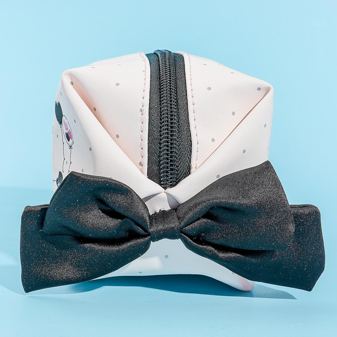 Use this cute pouch to store your lipstick, mascara, and other small cosmetic items. It showcases prints of Sanrio cuties dressed up in Gothic Lolita outfits for a fun little party! This zippered pouch also has cute Gothic Lolita ribbons.