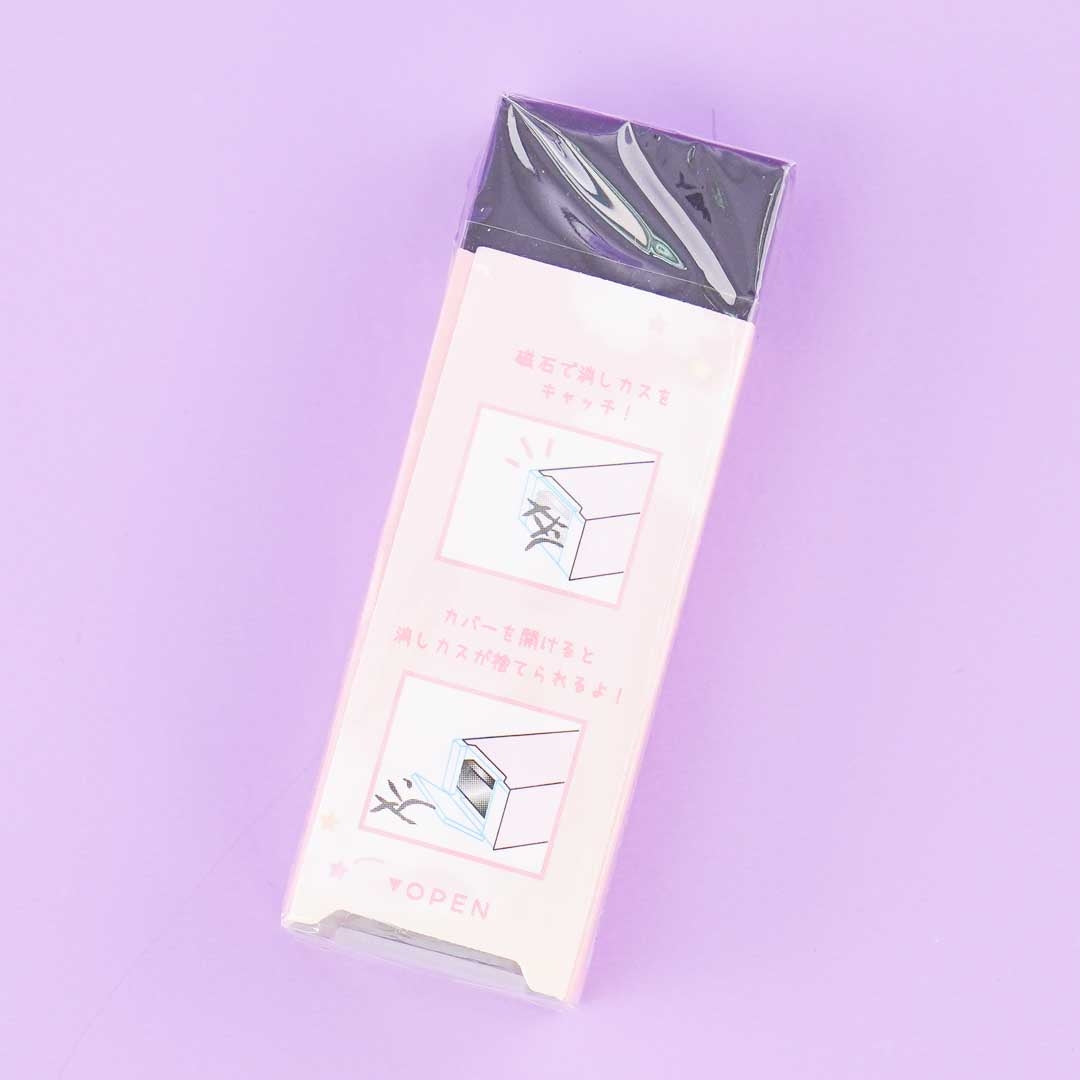 This eraser features a paper sleeve that has a kawaii illustration of the Sanrio Characters hanging out in a star and moon-filled sky! Use this special eraser to maintain the cleanliness of your school notes. Simply clear out the eraser shavings using the magnet end.