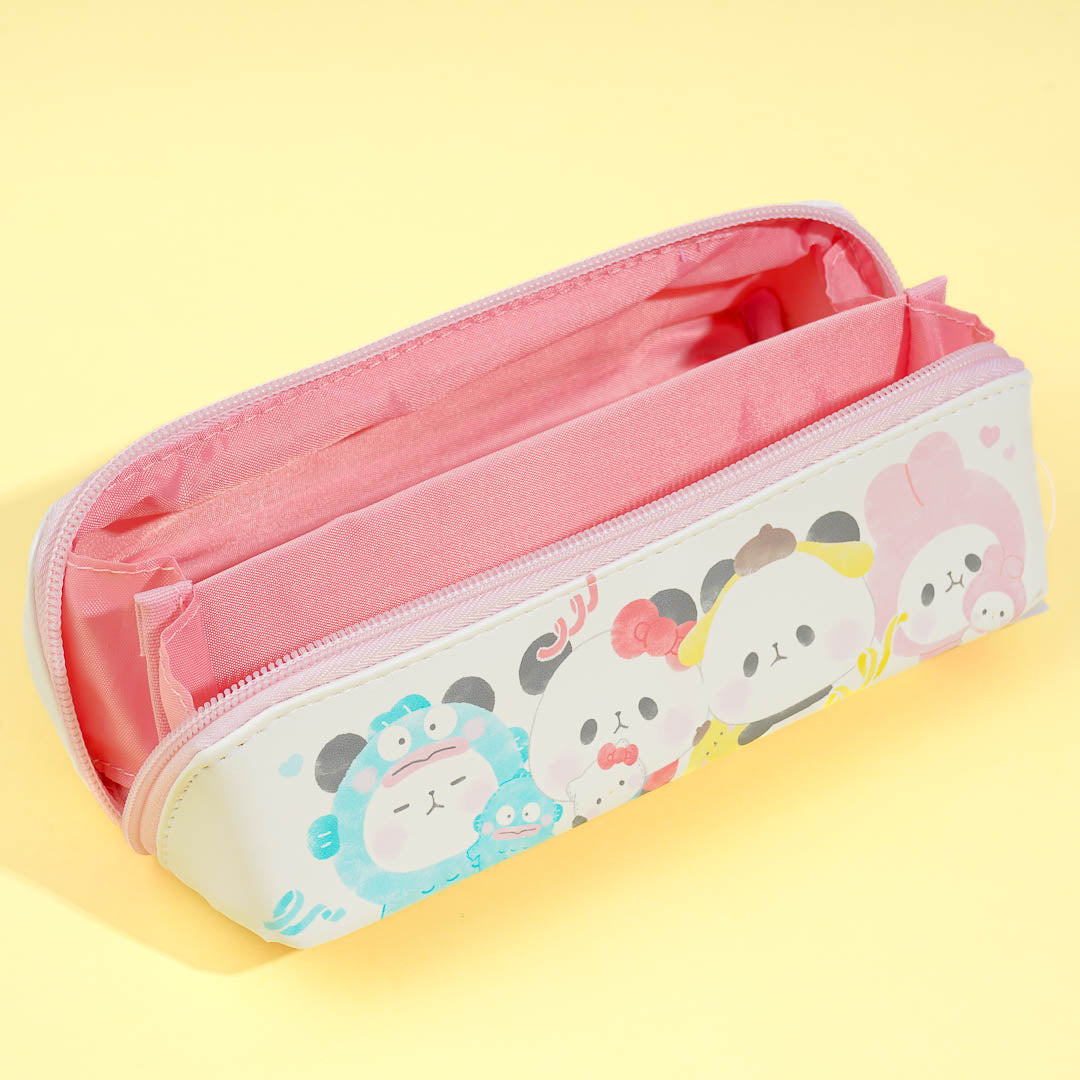 Use this kawaii pencil case to organize your pens, markers, and more. It features prints of Mochi Mochi Panda characters wearing outfits based on cuties from Sanrio. It has a zipper closure and it has two compartments for you to use.