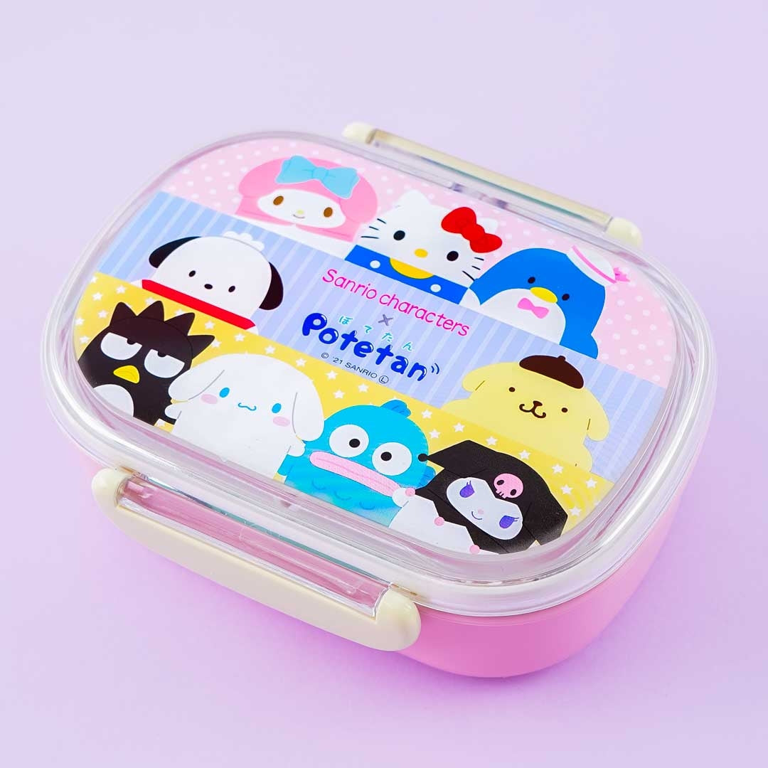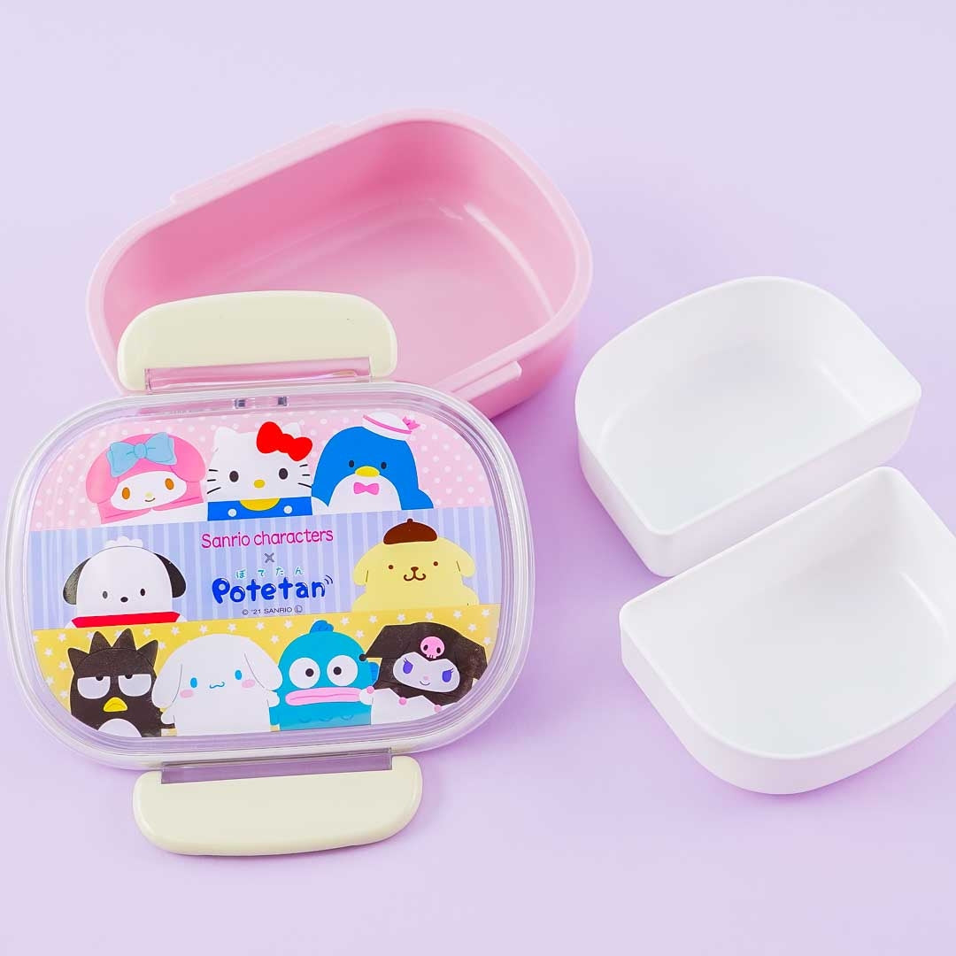 A cute bento box featuring prints of Sanrio Characters with a Potetan design