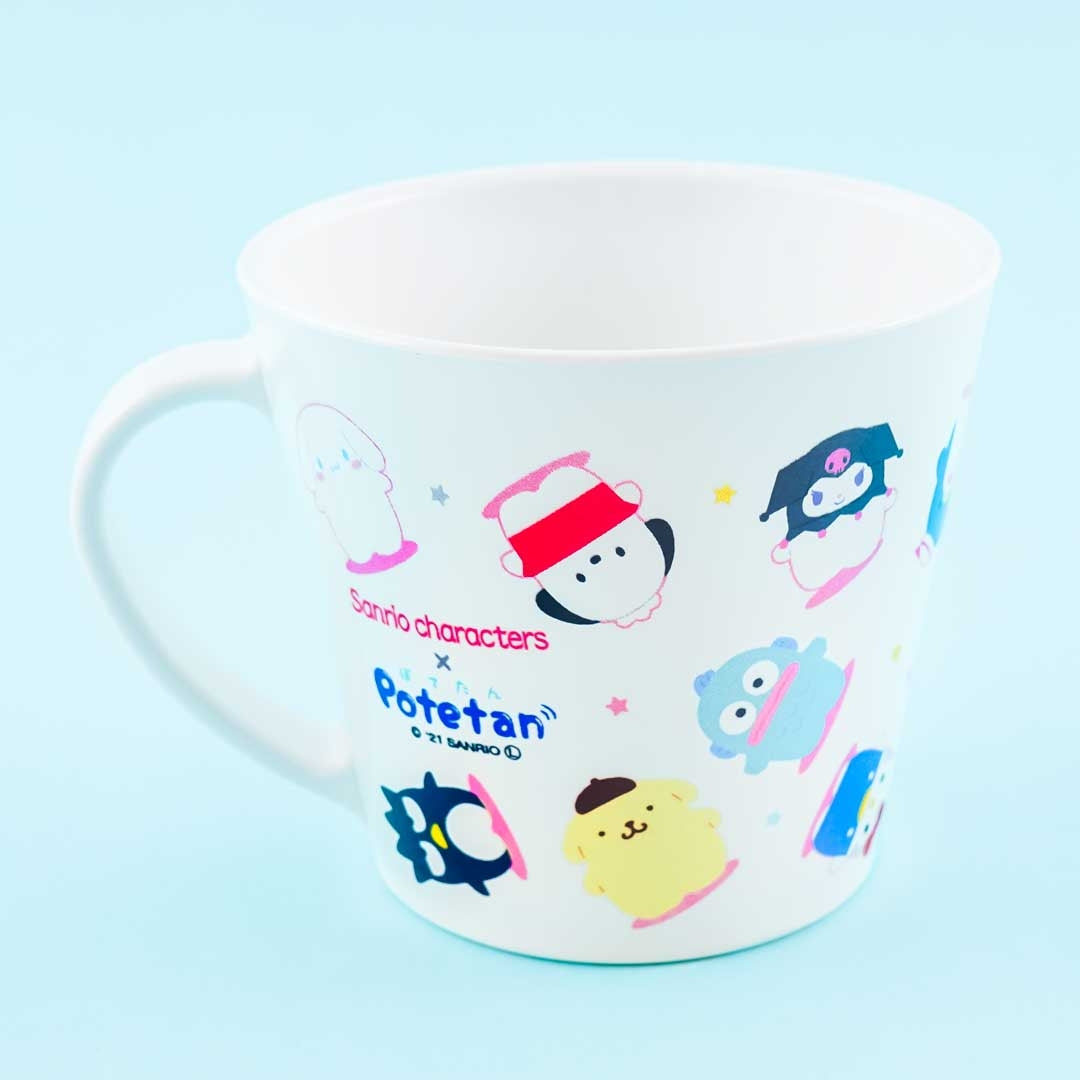 A super cute mug featuring prints of Sanrio Characters with the same design as Potetan animal plushies