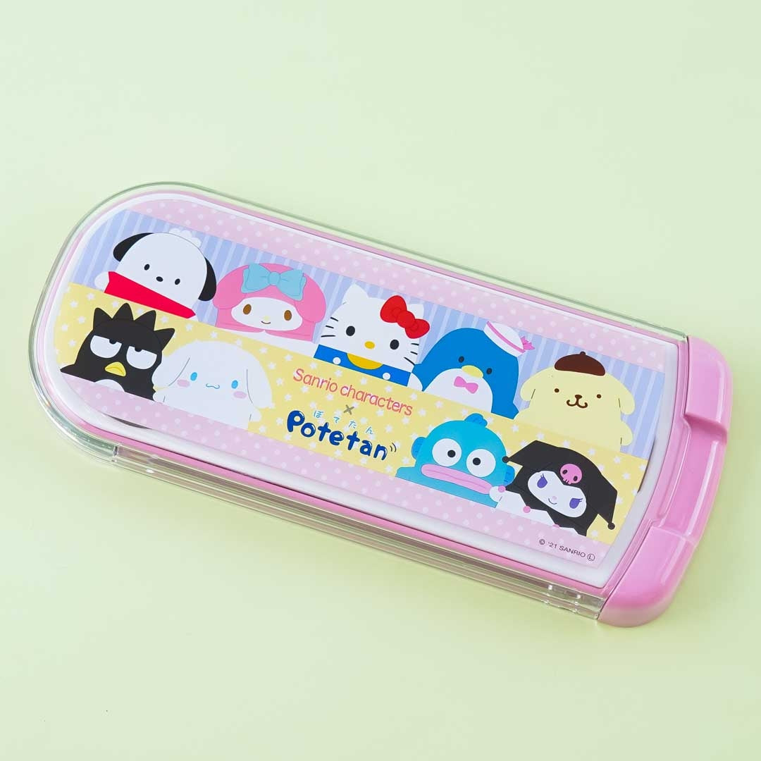 Enjoy a healthy meal with this super cute set of utensils. It includes a spoon, a fork, and a pair of chopsticks that are safe for dishwashers. The set also comes with a carrying case featuring Potetan-inspired Sanrio characters.
