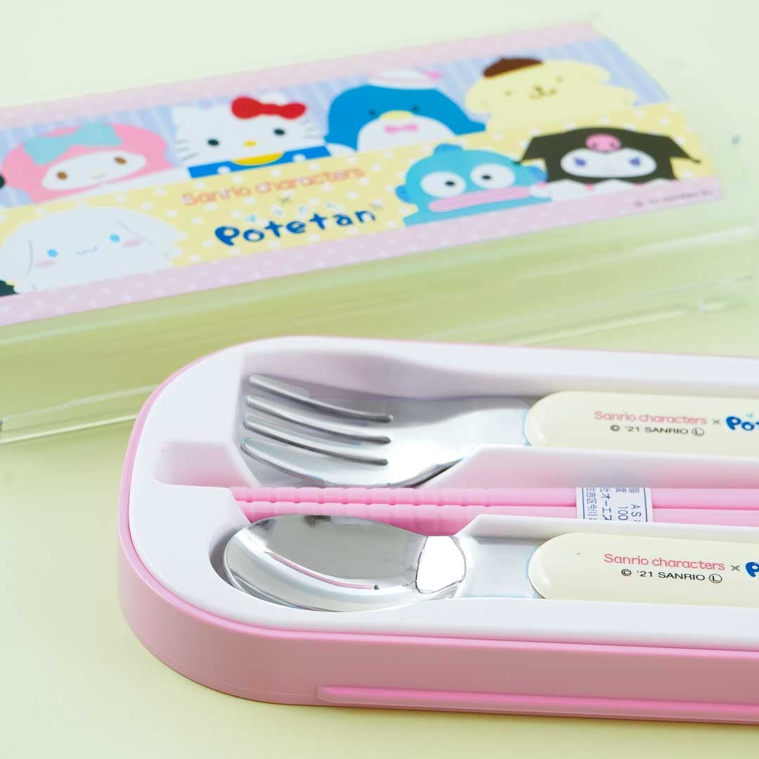 • A kawaii utensil set illustrated with Potetan-inspired Sanrio Characters