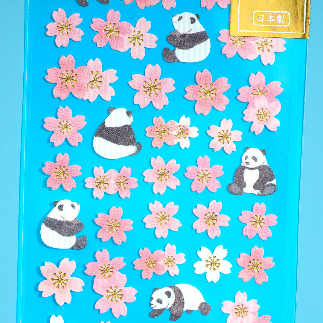Have fun decorating your journal with this cute sheet of stickers. It showcases pandas enjoying the sakura blossoms! These stickers showcase gold accents.
