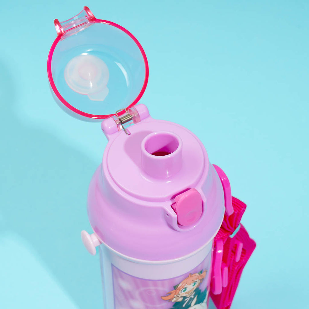 Stay hydrated while roaming the anime convention hall with this super cute plastic water bottle. It features prints of Anya from the popular anime series Spy x Family hanging out with her dog, Bond. This water bottle has a push-type spout and wide mouth so you can easily put ice inside! You can easily carry this lightweight bottle around thanks to its shoulder strap.