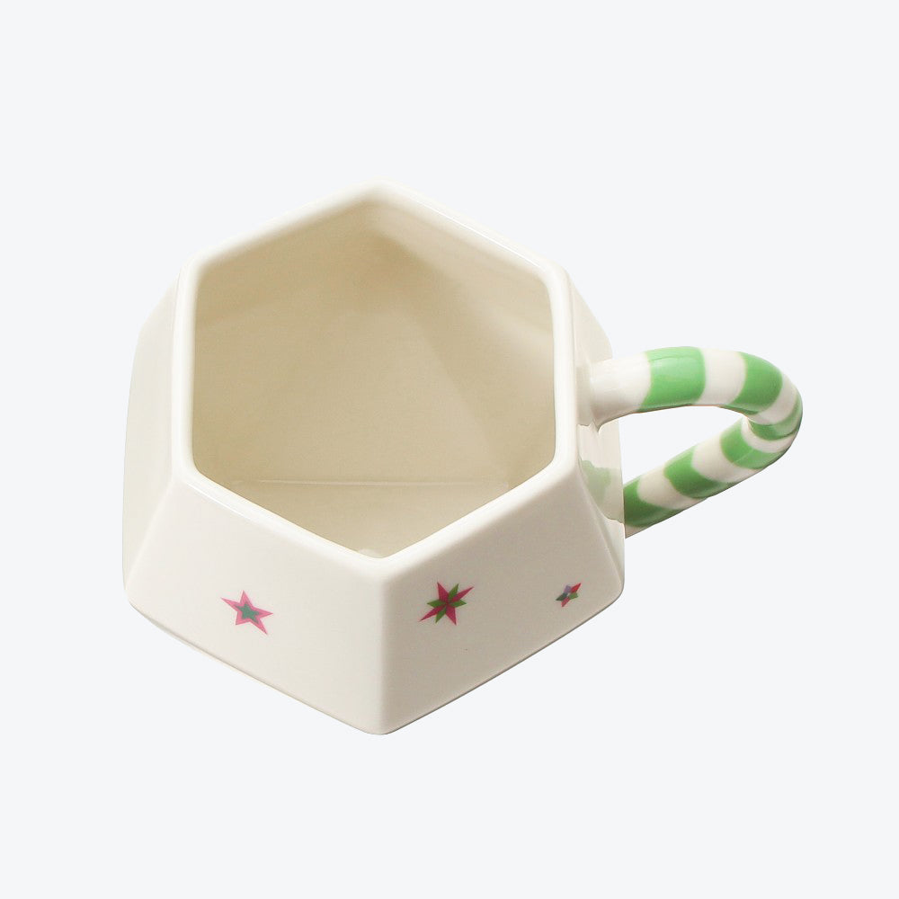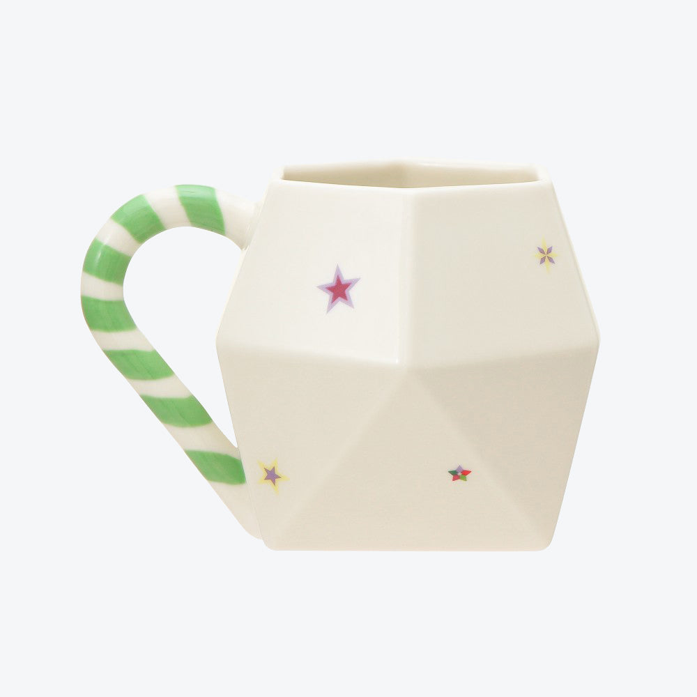 Serve your warm holiday drink in this collectible mug from Starbucks Japan! It features prints of stars and a candy cane handle. This mug also comes in a unique polygonal shape that completes the Christmas look.