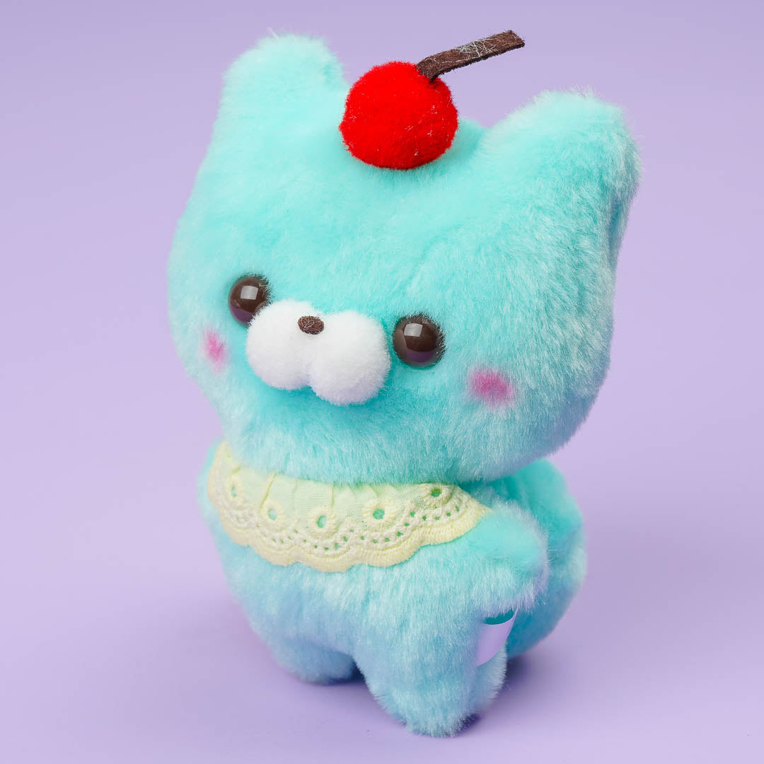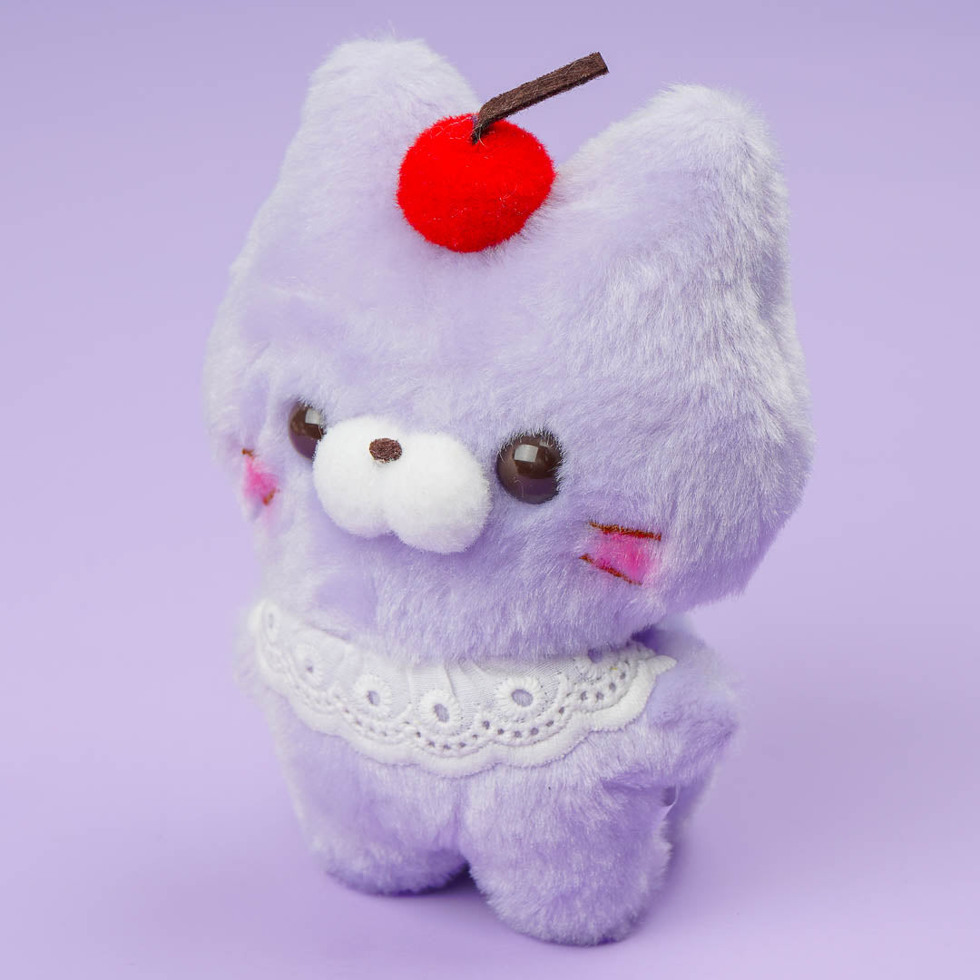 Cuddle up with a Sukuttotacchisan Sofvi Cat plushie when you go to sleep at night! It features a cute cherry on its head while wearing a lace fill around its neck.