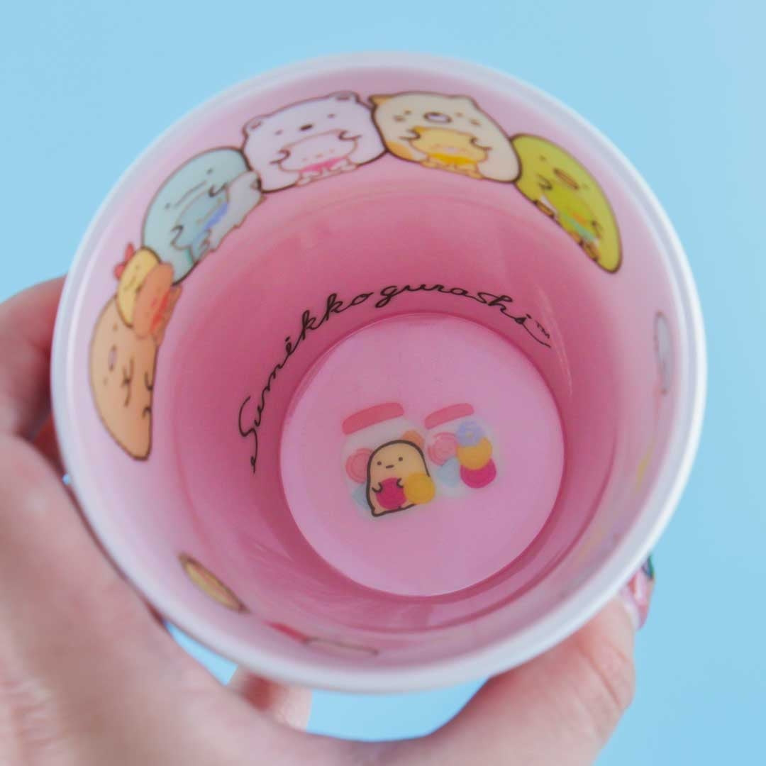 A cup featuring characters from the Sumikko Gurashi series on the inside and outside