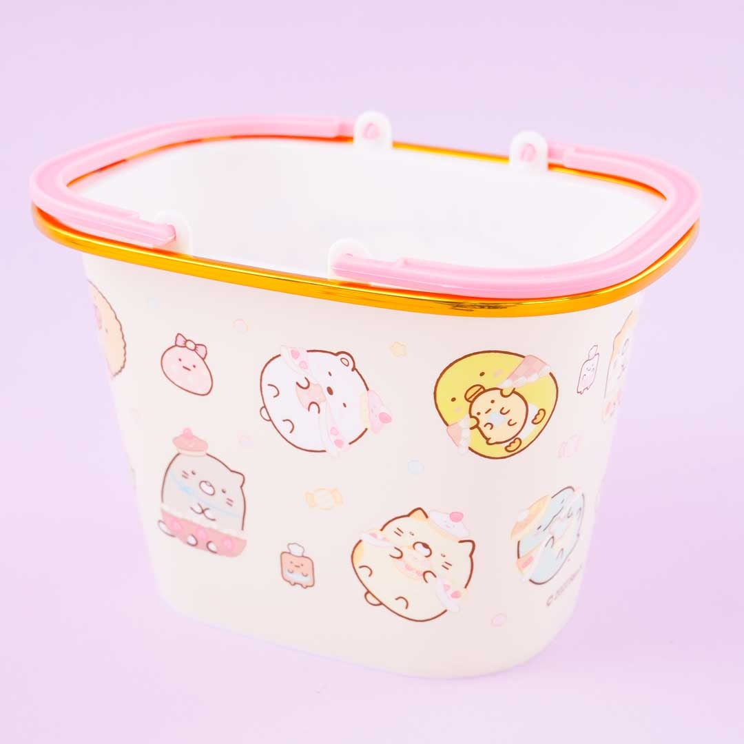 A kawaii mini basket illustrated with the Sumikko Gurashi in dessert-themed outfits