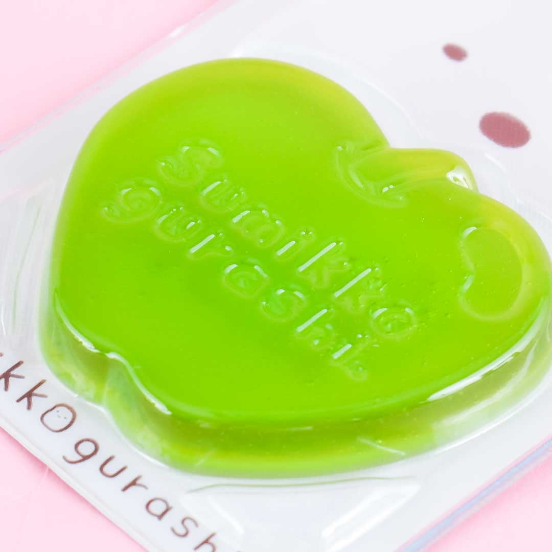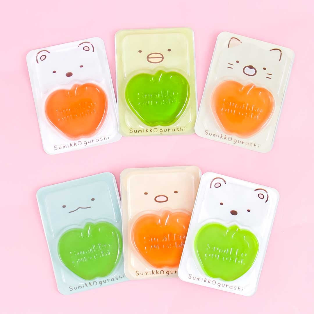 An apple-shaped gummy featuring a Sumikko Gurashi character on the packaging
