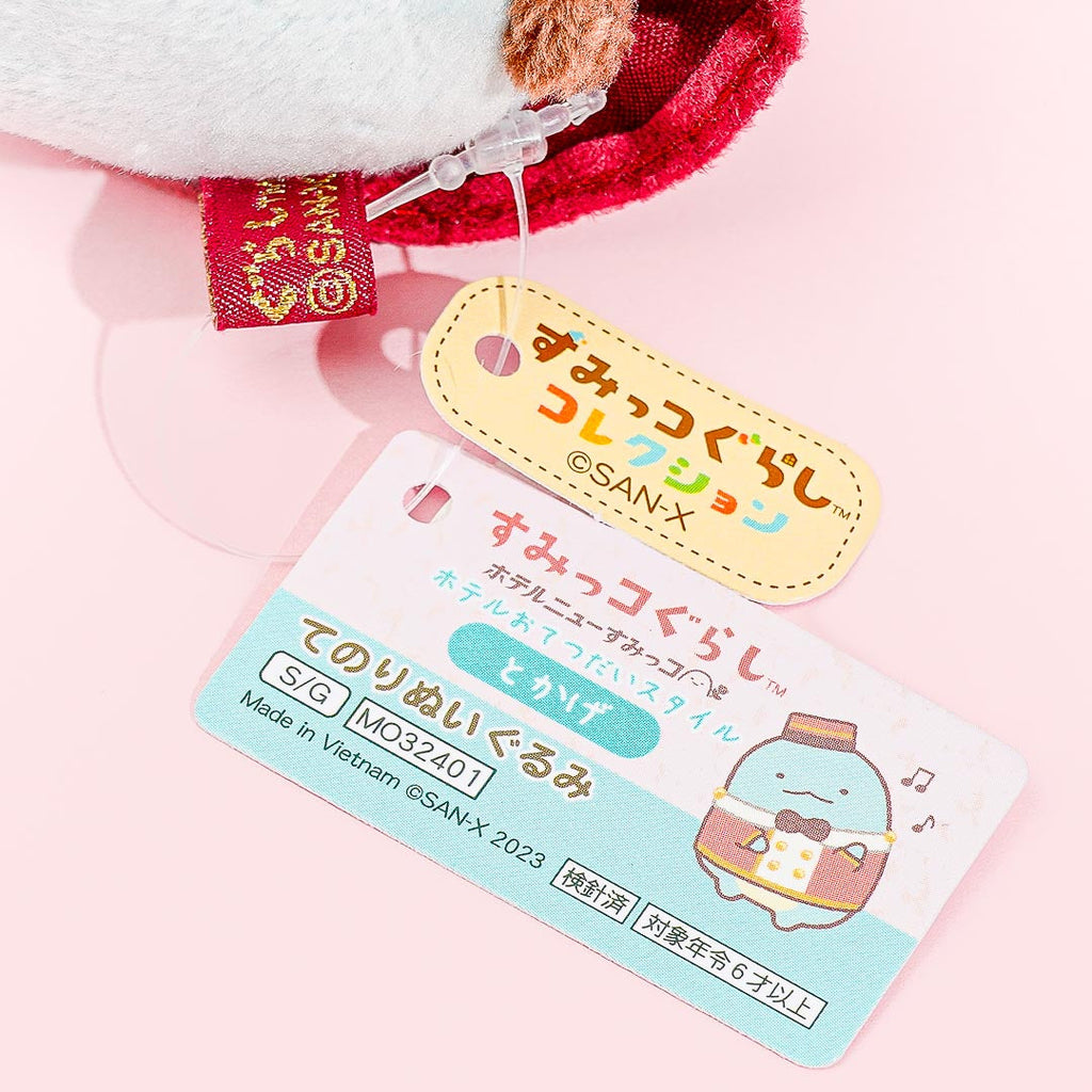 Tokage from the Sumikko Gurashi is dressed as a maid at a luxury hotel. This mini-sized plushie comes from the Sumikko Gurashi Hotel series. Set it on your desk as kawaii decor!