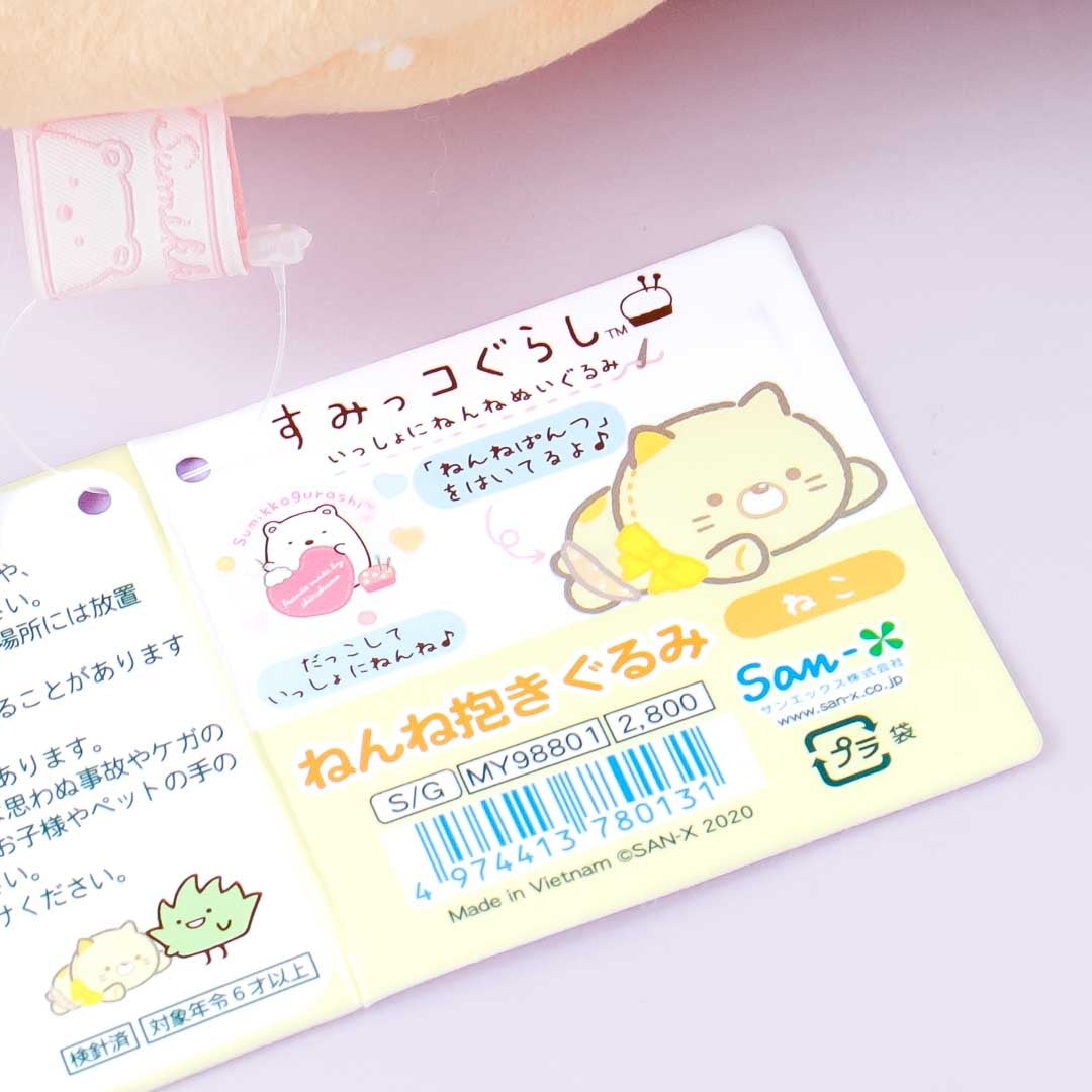 Cuddle with this super cute Neko plushie from the Sumikko Gurashi gang! This super soft and fluffy plushie is in a hugging position that makes you want to squeeze it tighter! Neko is wearing a super cute yellow ribbon with a metal charm and orange shorts.