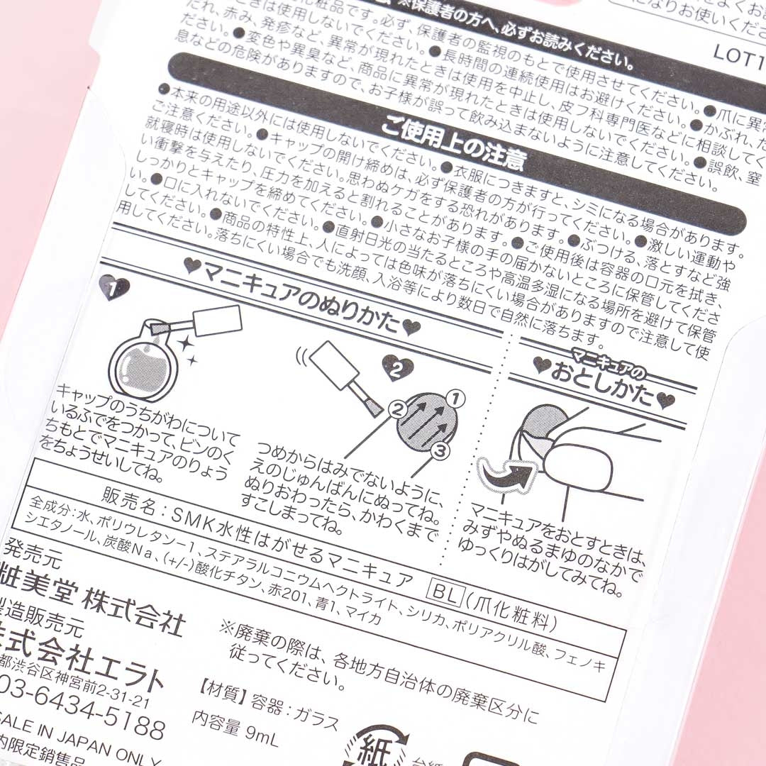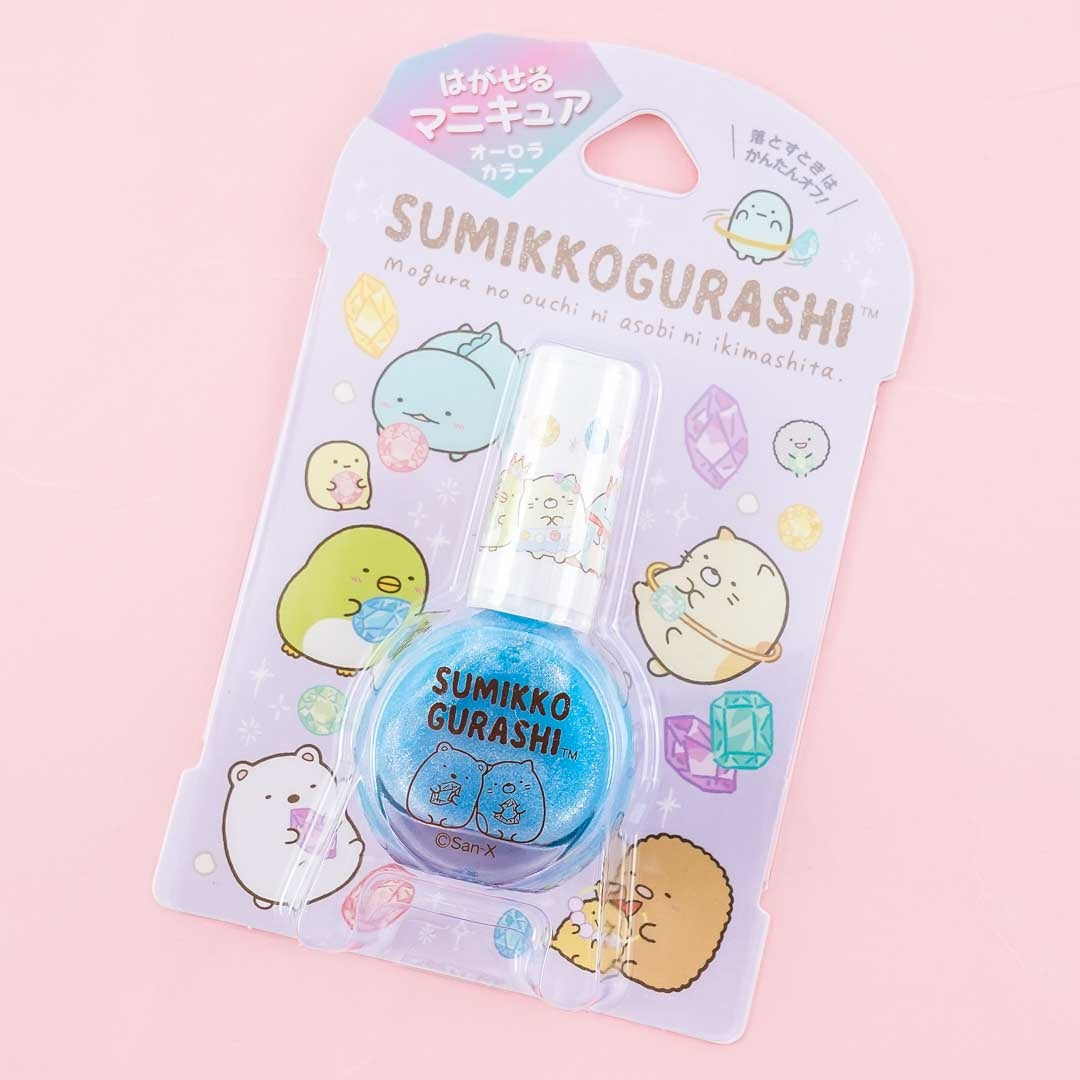 Kawaii-fy your nails with this super cute bottle of shiny and glittery nail polish in aqua color. The bottle features Sumikko Gurashi and jewel gems. You can easily peel off the nail polish without using a polish remover.