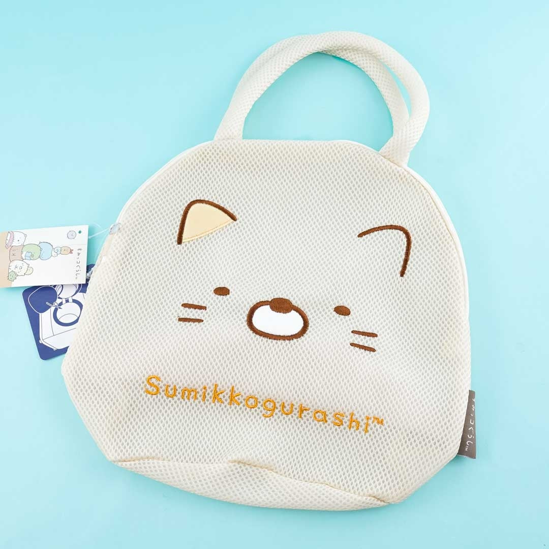 A super kawaii oval-shaped Neko laundry bag from the Sumikko Gurashi