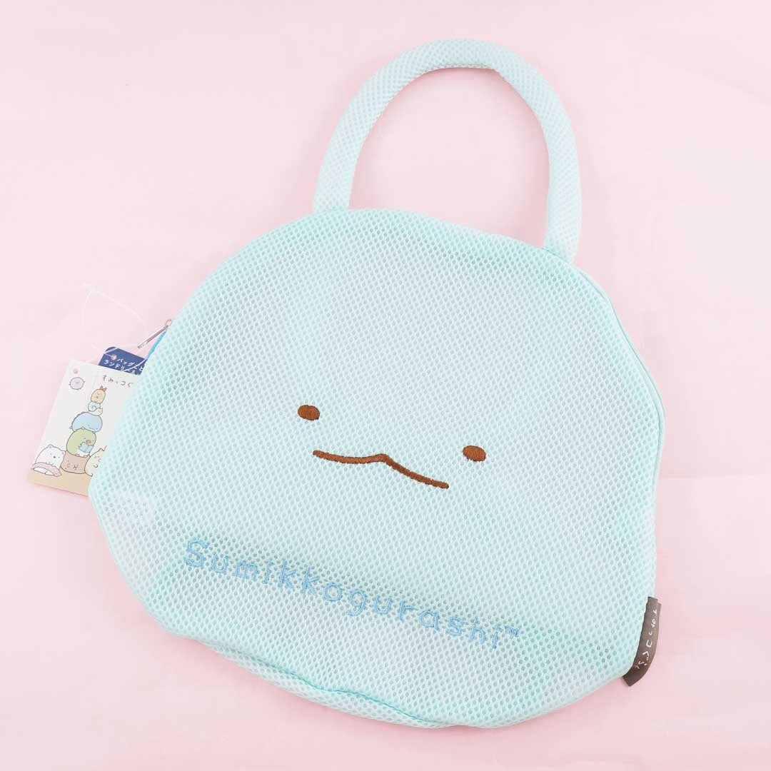 A kawaii oval-shaped Tokage laundry bag from the Sumikko Gurashi