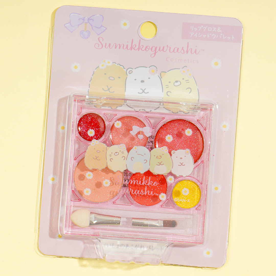Make space in your makeup collection for this cute lip gloss & eyeshadow palette. It features prints of the Sumikko Gurashi together! It has a two-sided brush and multiple shades that you can use.