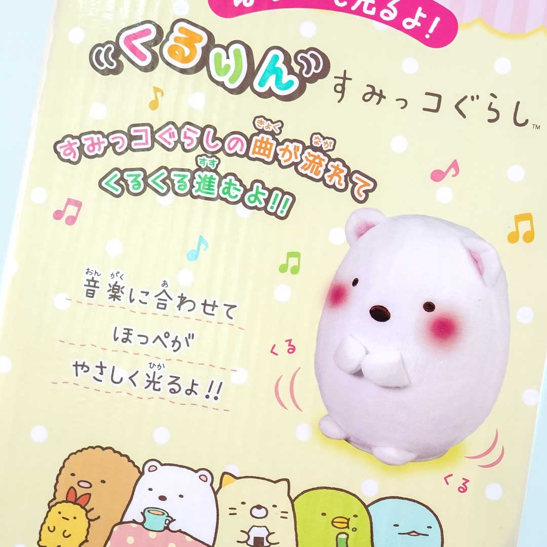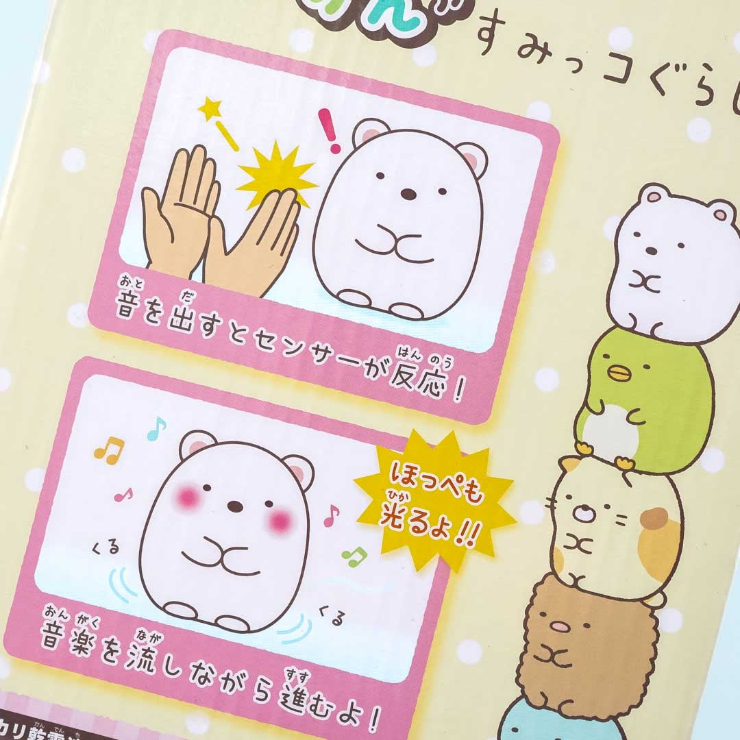 Features cheeks that shine to the music of the Sumikko Gurashi