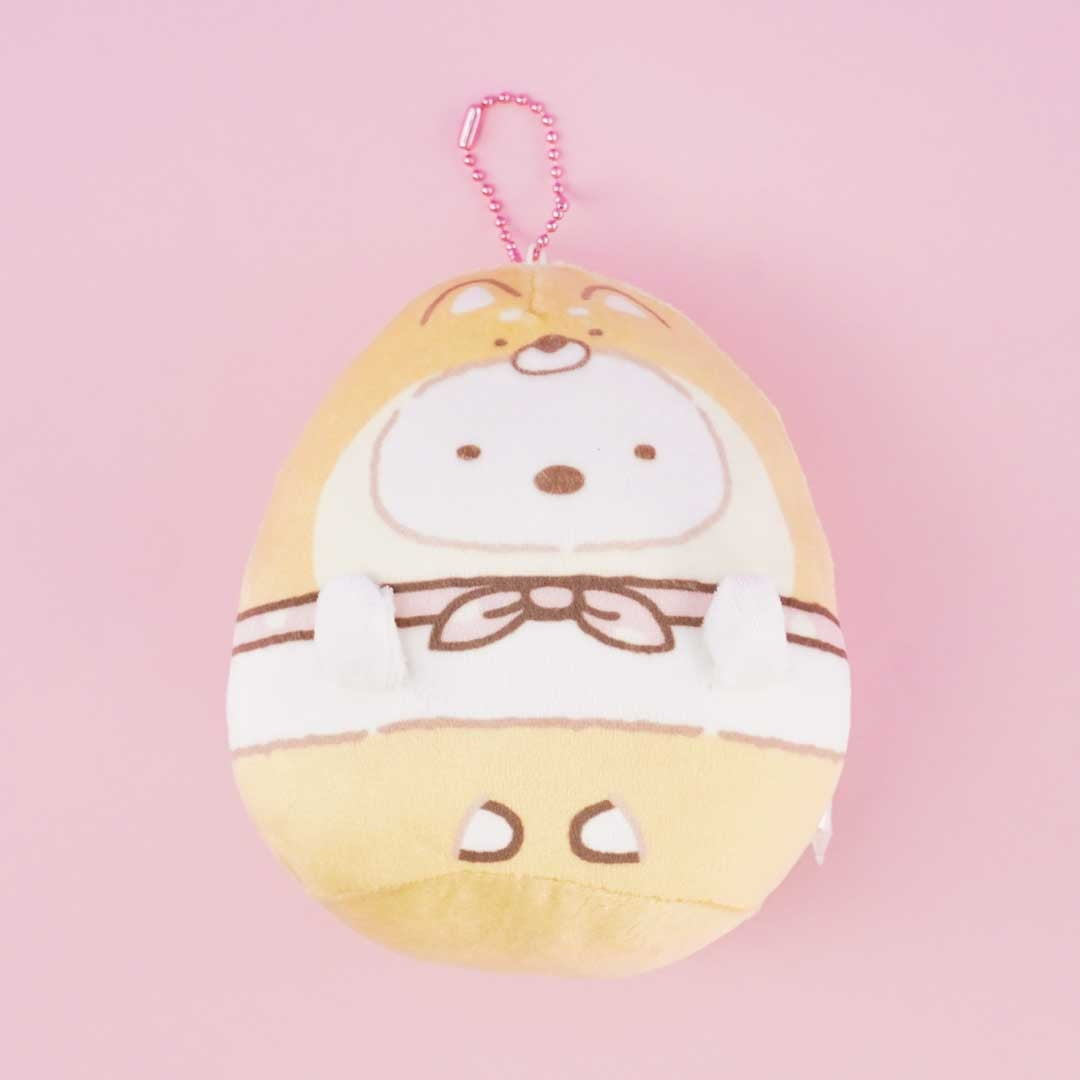 Attach this soft-textured medium-sized plushie to your favorite sling bag. This puffy round charm comes with a detachable ball chain and features Shirokuma in a onesie Shiba Inu outfit.