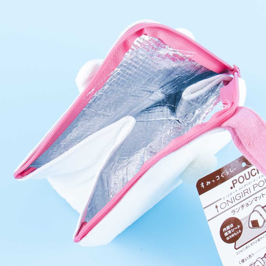 A cute insulated onigiri-shaped pouch featuring Shirokuma from the Sumikko Gurashi
