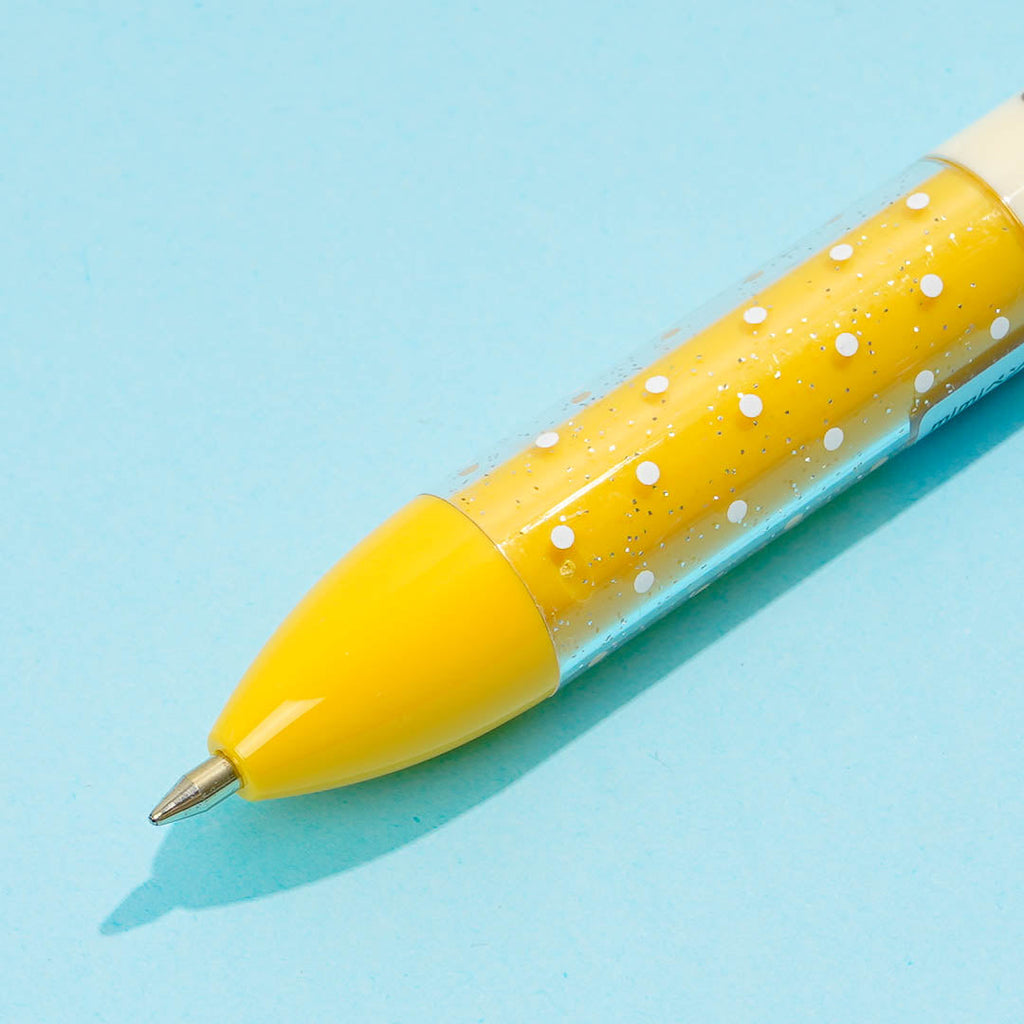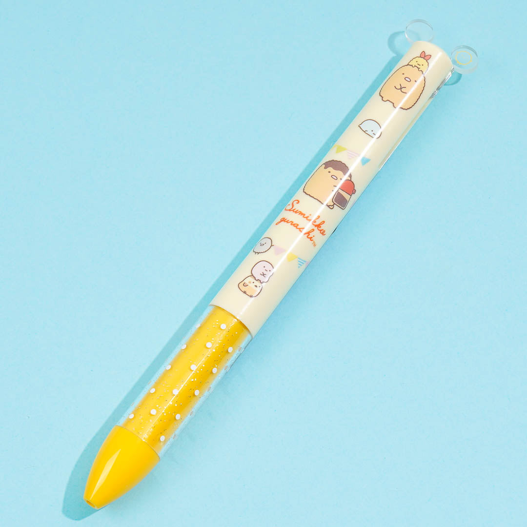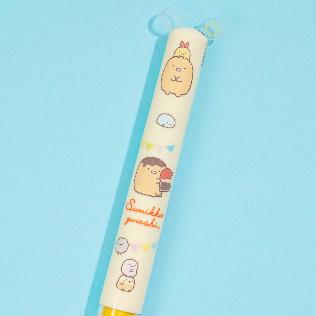 This cute click pen features prints of the Sumikko Gurashi gang having a party. Use it to write down important notes at work or at school! It has two different ink colors that you can use - black and red.