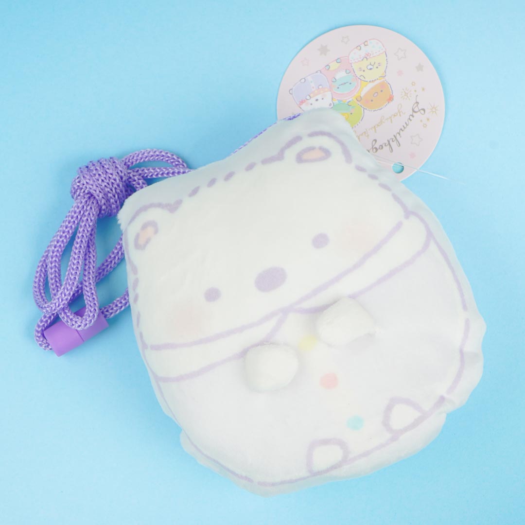 This kawaii neck pouch is made from fluffy plush fabric! It features a cute die-cut illustration of Shirokuma from the Sumikko Gurashi cuties. You can use this zippered pouch to carry around your sweets!