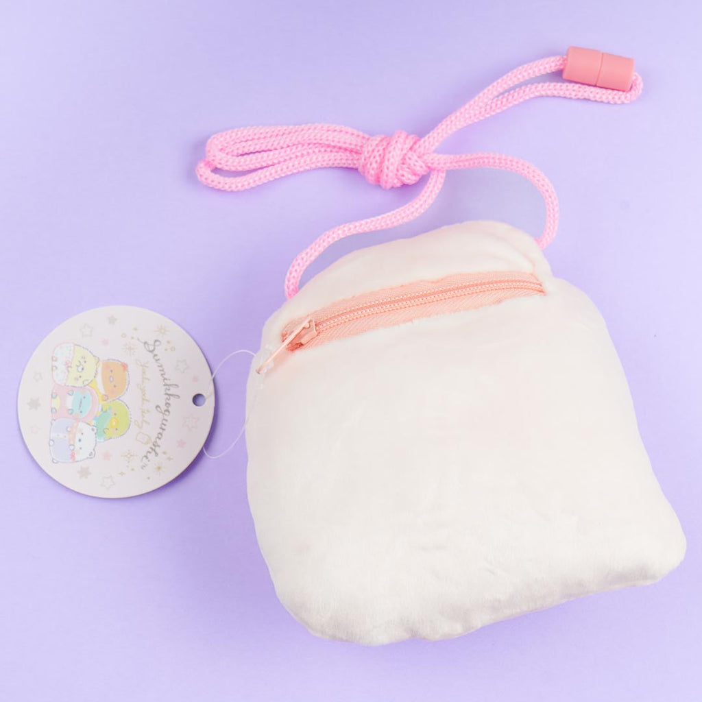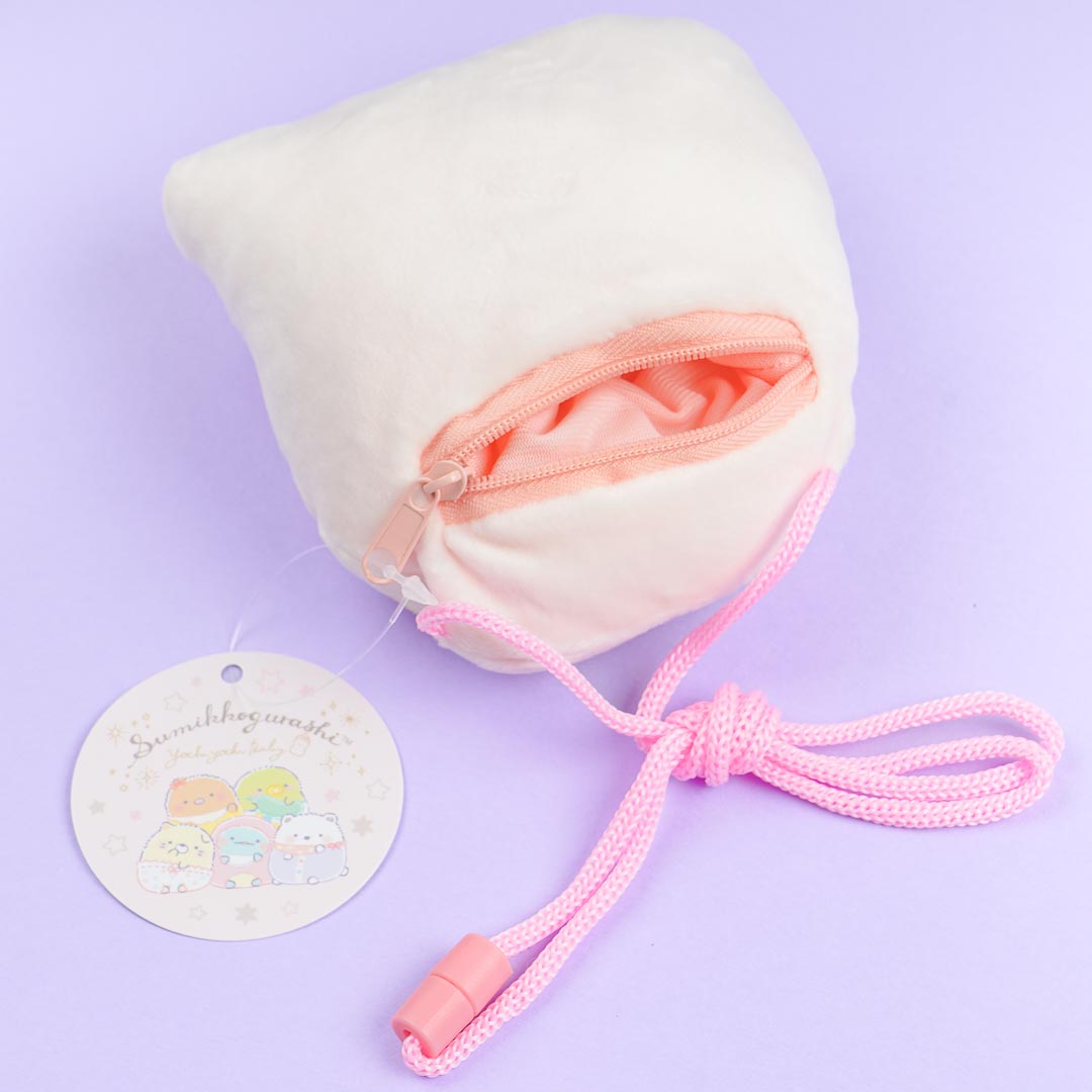 Bring this kawaii neck pouch on your next outing! The pouch is made from plush material and features a cute die-cut illustration of Tokage from the Sumikko Gurashi cuties. It's a plushie and a pouch in one!