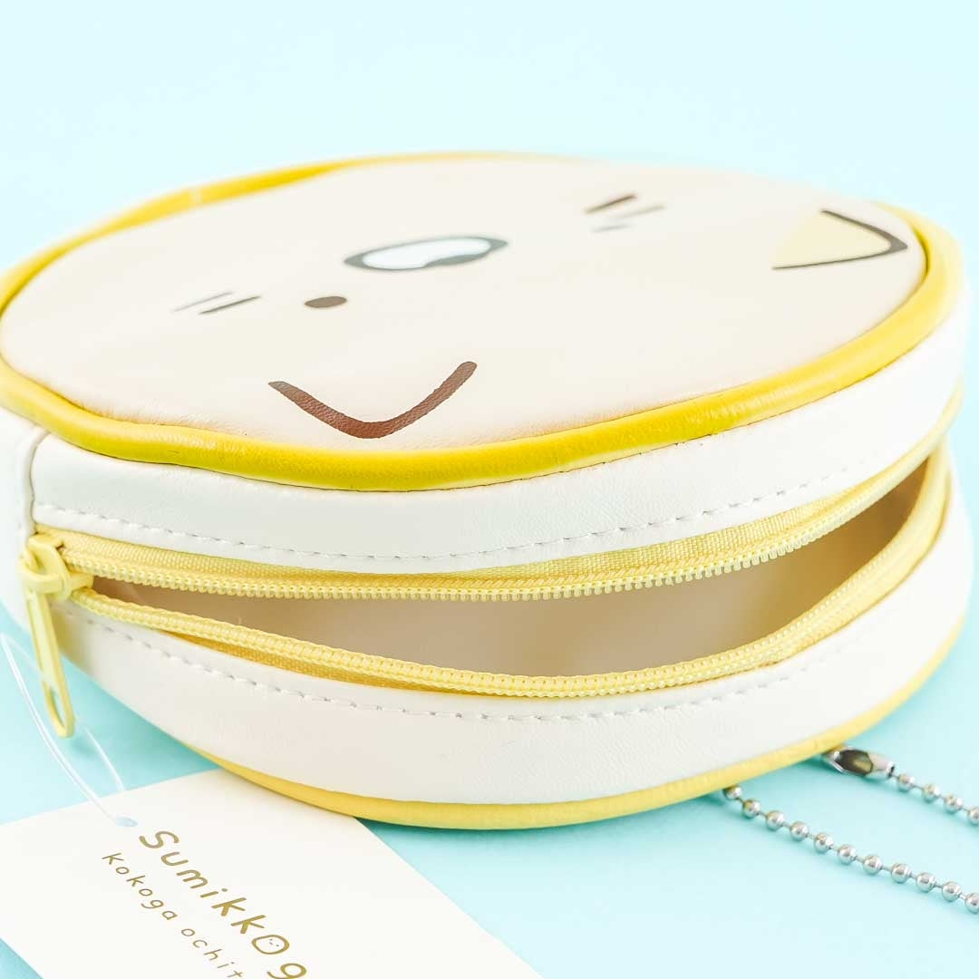 This super kawaii Neko round face pouch from the Sumikko Gurashi series is perfect for keeping your trinkets! It has a removable ball chain so you can hang it anywhere you'd like. Remember to close its zipper closure to keep your things safe and secure.