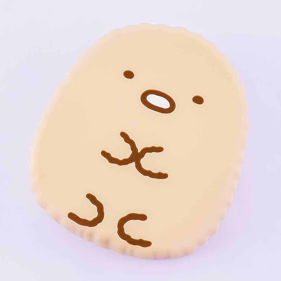 Keep your trinkets inside this super kawaii siliconeTonkatsu pouch! This cutie from the Sumikko Gurashi can sit on its own. It has a zipper closure with a ribbon tag.