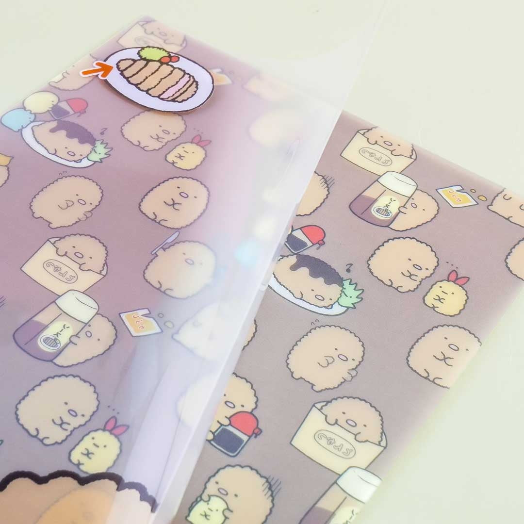 This super kawaii A4 file folder is covered in prints of Sumikko Gurashi member Tonkatsu doing different activities. Use this semi-transparent folder to sort your paper documents.