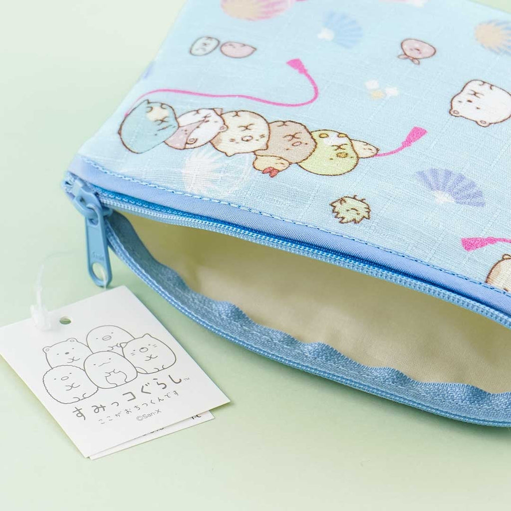 A super kawaii pouch featuring Sumikko Gurashi characters and traditional Japanese fans