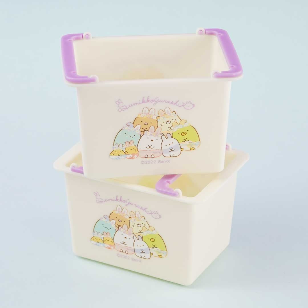 A set of mini stackable baskets decorated with prints of the Sumikko gang from the Mysterious Rabbit Garden series