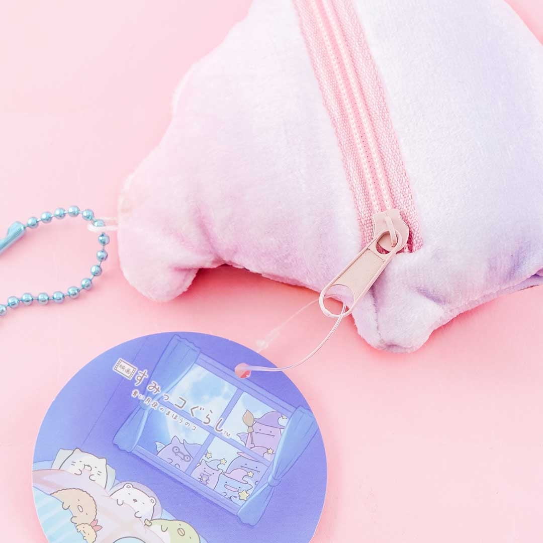 Organize your coins inside this kawaii die-cut purse! It features Penguin? dressed as a wizard from the film, “Sumikko Gurashi: The Little Wizard In The Blue Moonlight!” It’s made of soft polyester, has a back zipper closure, and comes with a removable ball chain that you can attach to your fave backpack!