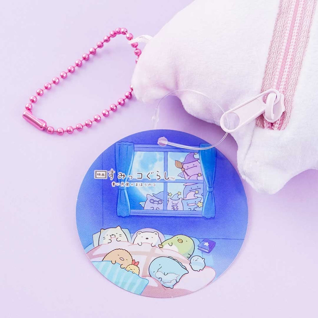 Organize your coins inside this cute Tonkatsu purse! This super-soft cutie comes dressed as a wizard from the movie, “Sumikko Gurashi: The Little Wizard In The Blue Moonlight!” The die-cut purse has a zippered back and also comes with a detachable ball chain — so you can use it to accessorize your favorite shoulder bag.