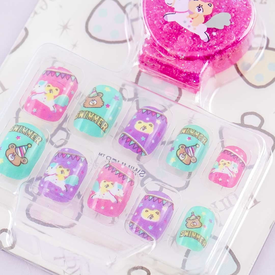 A super cute instant manicure set featuring circus bears and a unicorn