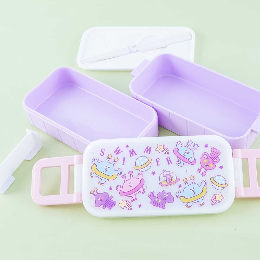 Pack a healthy and hearty meal for lunch using this super cute bento box illustrated with Space Boy characters! It has two stackable containers, a detachable divider, and a pair of chopsticks. Remember to remove the lid when you heat your meal in the microwave! This bento box is not safe to clean in the dishwasher.
