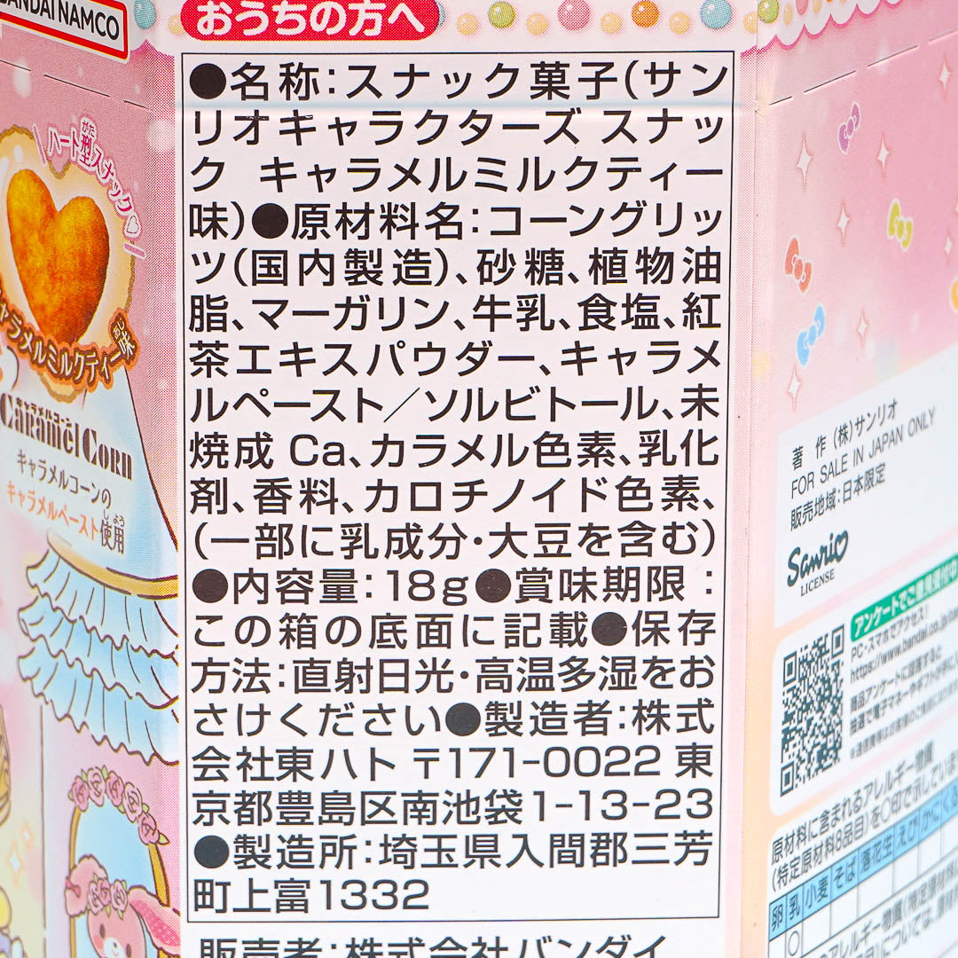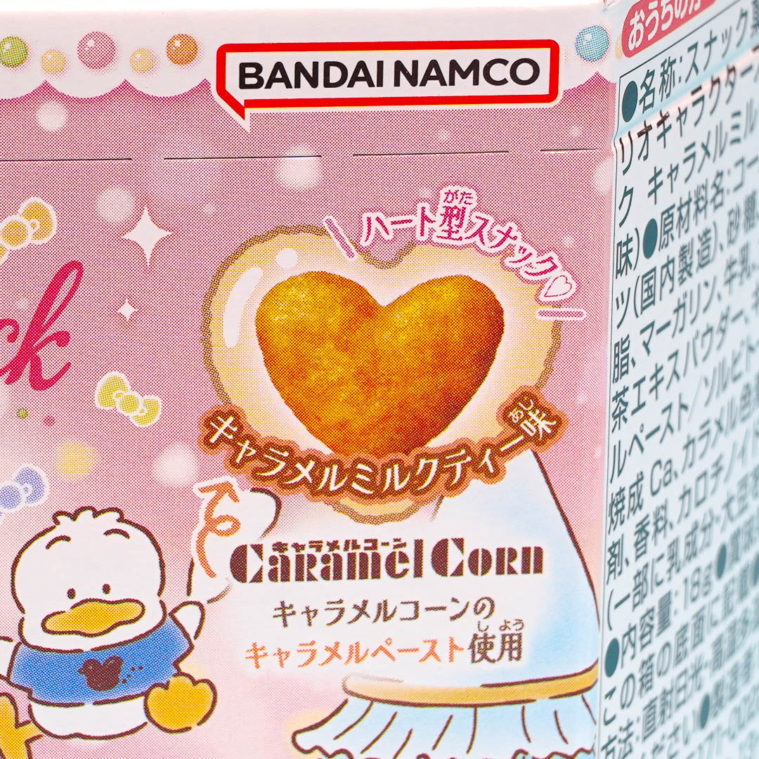 Share this heart-shaped snack with your friends! It's made with caramel paste from Tohato Caramel Corn to recreate a caramel milk tea flavor. This pack comes with a sticker featuring the Sanrio Characters!