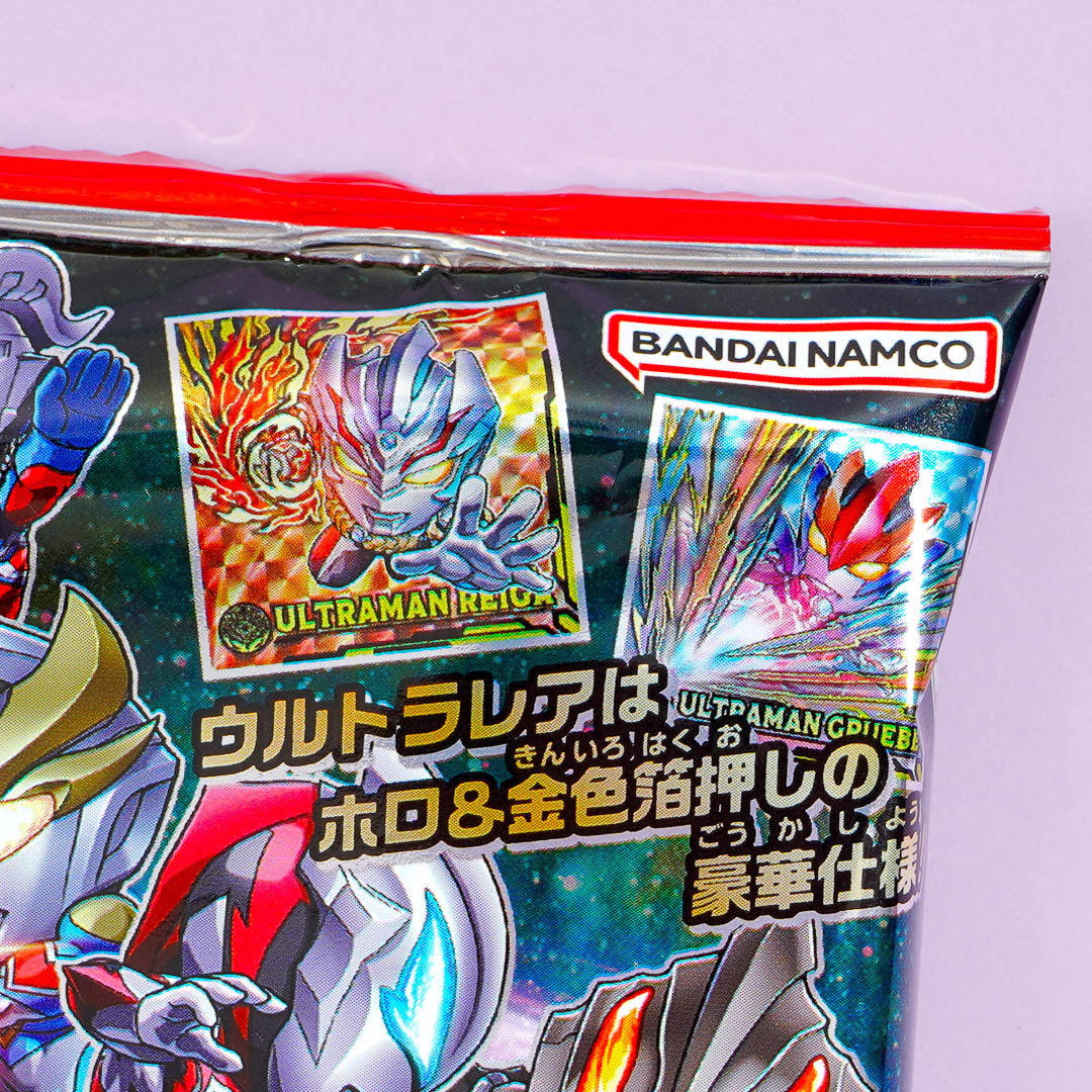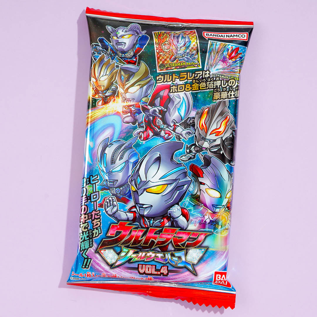 The fourth installment of Ultraman sticker collection is here! Have fun collecting metallic stickers featuring illustrations of past Ultraman heroes. This pack also includes a delicious vanilla cream wafer that you can munch on while watching the Ultraman series!