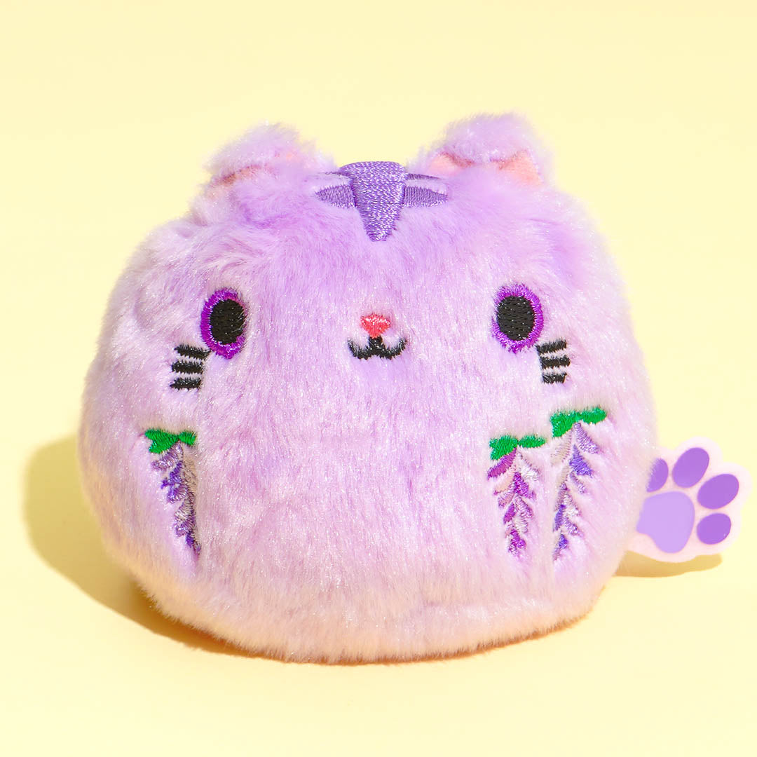 Have fun playing with this mini plushie from the "Neko Dango Flower" plushies series! This super soft and fluffy cutie features wisteria flowers with purple embroidered details.