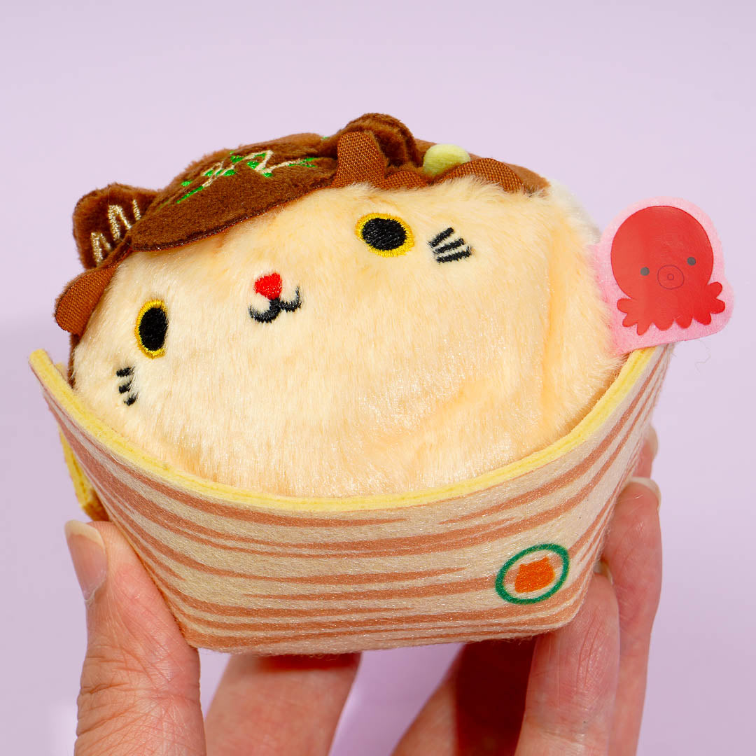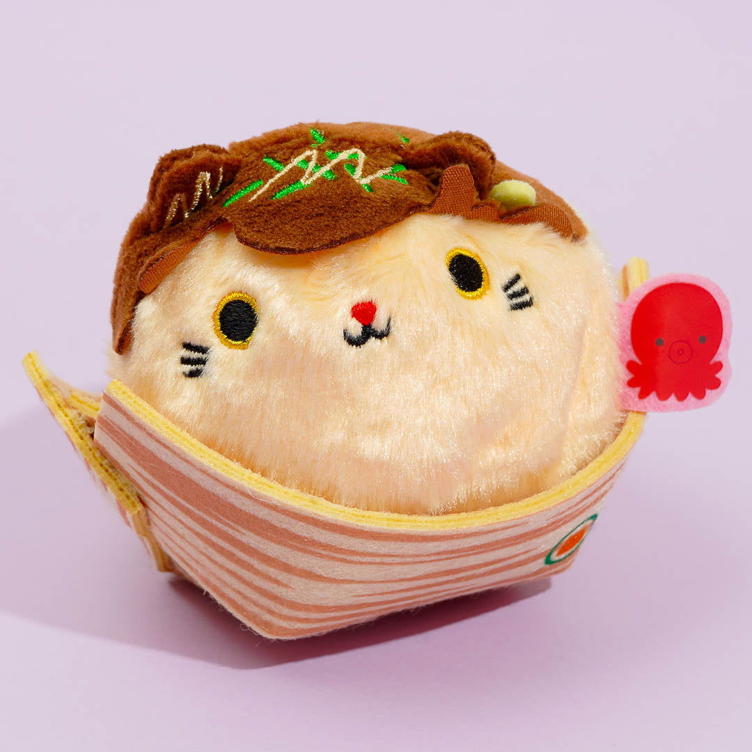 Wow, this Neko Dango plushie just transformed into a ball of takoyaki, a Japanese street food made of batter and octopus bits! Add this mini-sized stuffed toy to your collection.