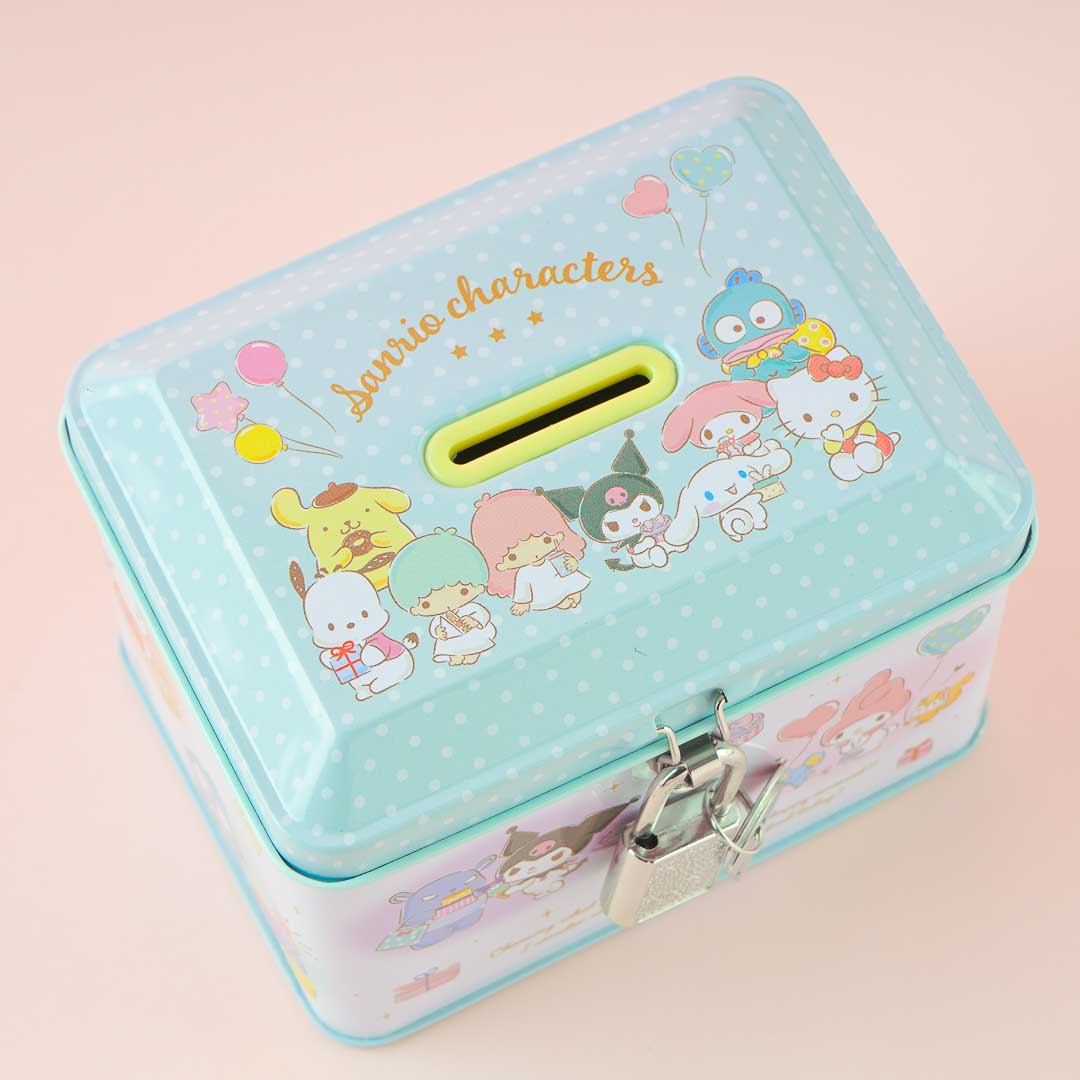 Start saving money with the help of this kawaii can bank! It's illustrated with Sanrio cuties having fun at a party. This can bank comes with a lock and keys so you can keep your savings safe and secure.
