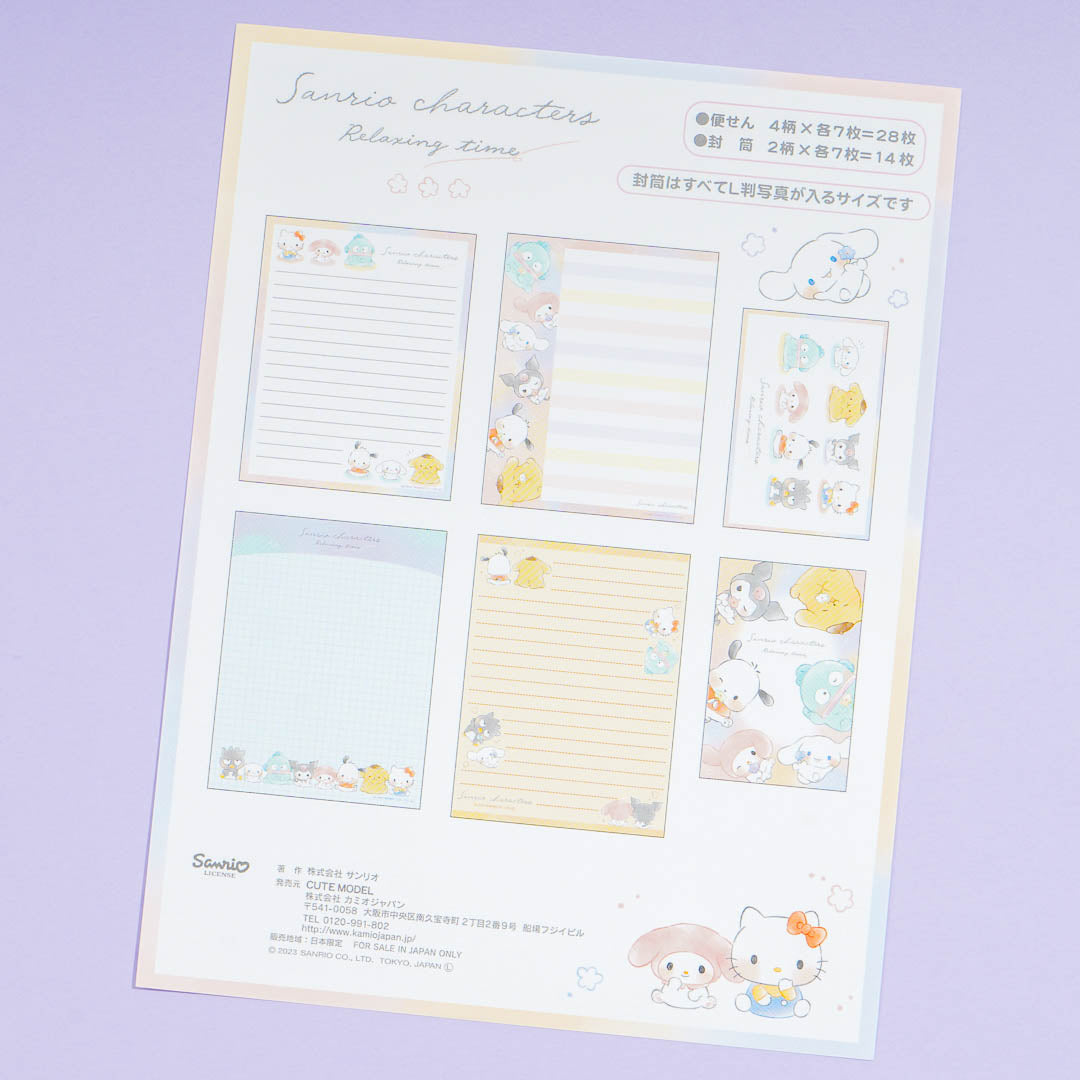 Write fun messages to your kawaii buddies with this super cute letter set. It's illustrated with Sanrio Characters relaxing! This letter set is the perfect addition to your stationery kit.